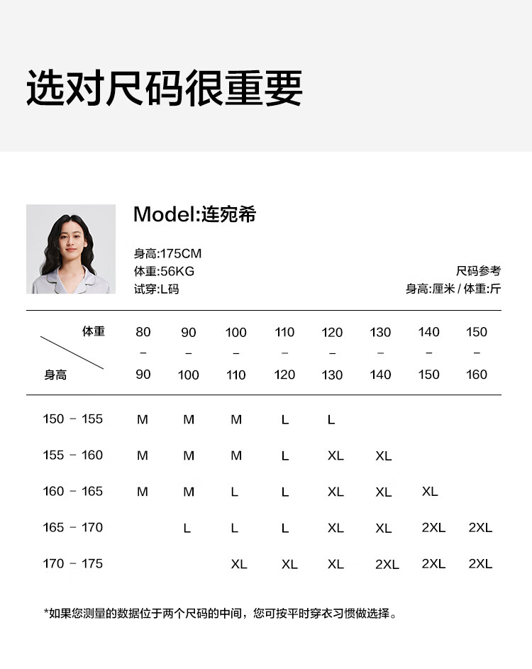 China (cm) 160-165/84-86 165-170 / 88-90 167-172 / 92-96 168-173 / 98-102 170-176 / 106-110