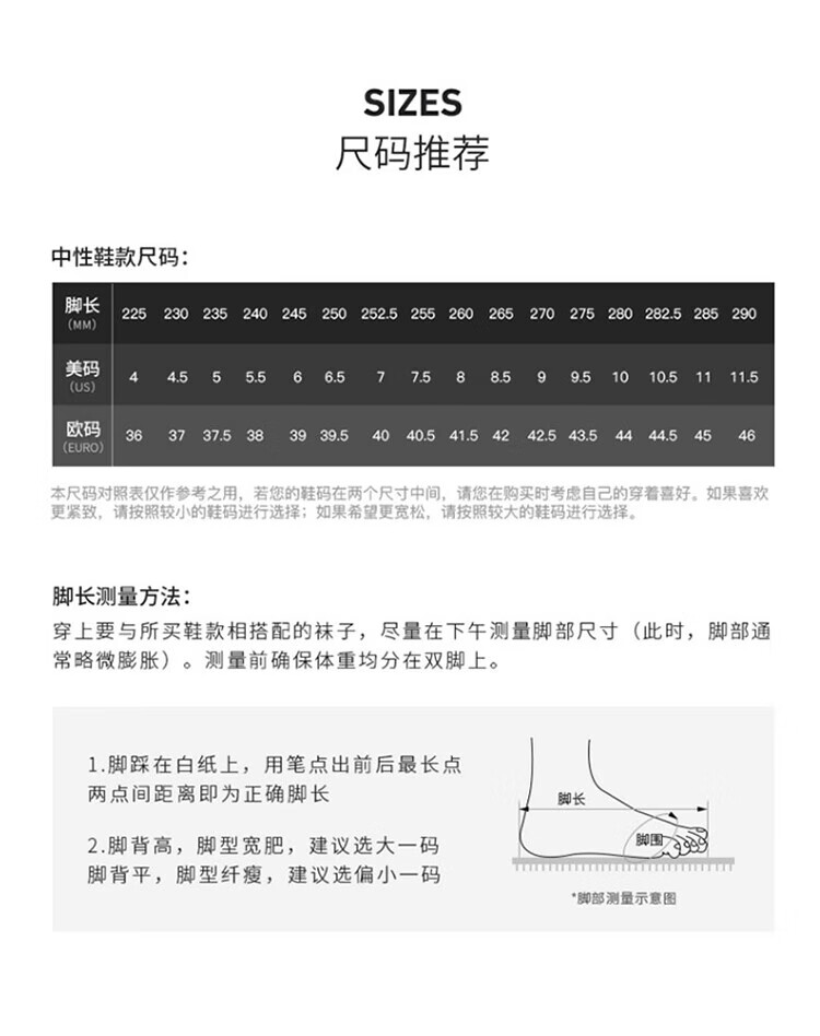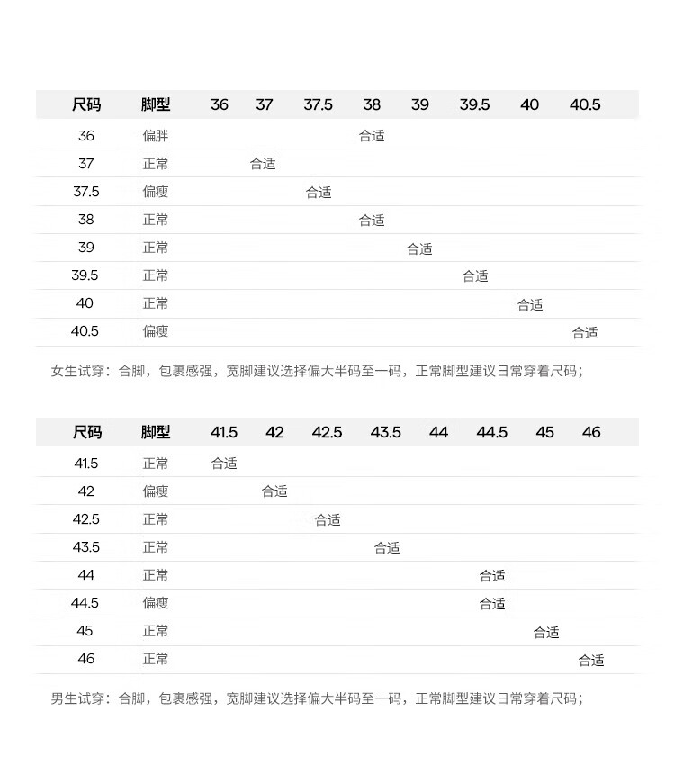 China (cm) 36 - 37 38 - 39 40 - 42 43 - 44 45 - 47