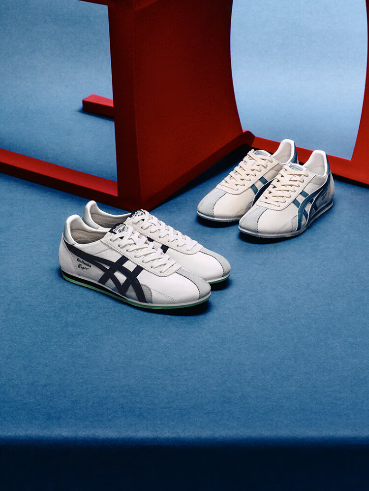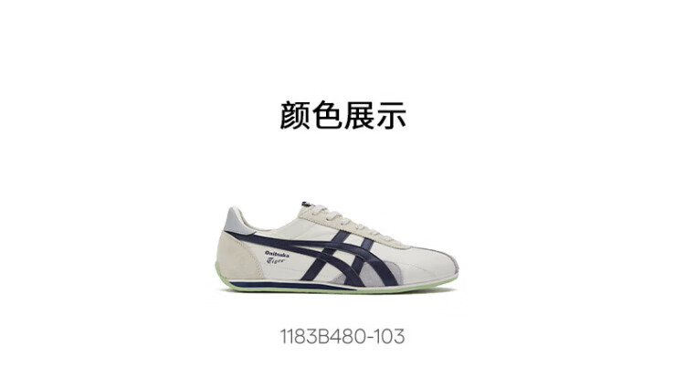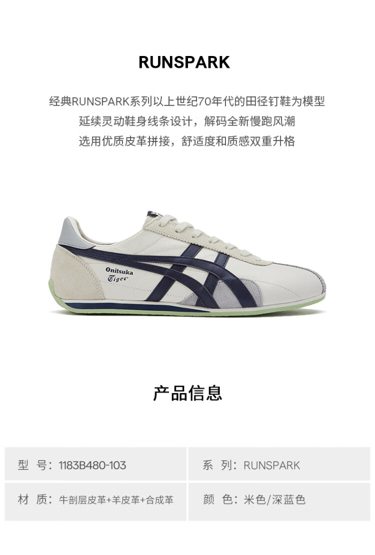 Onitsuka Tiger鬼塚虎RUNSPARK男女秋冬复古舒适运动休闲鞋 米色/深蓝色 42.5