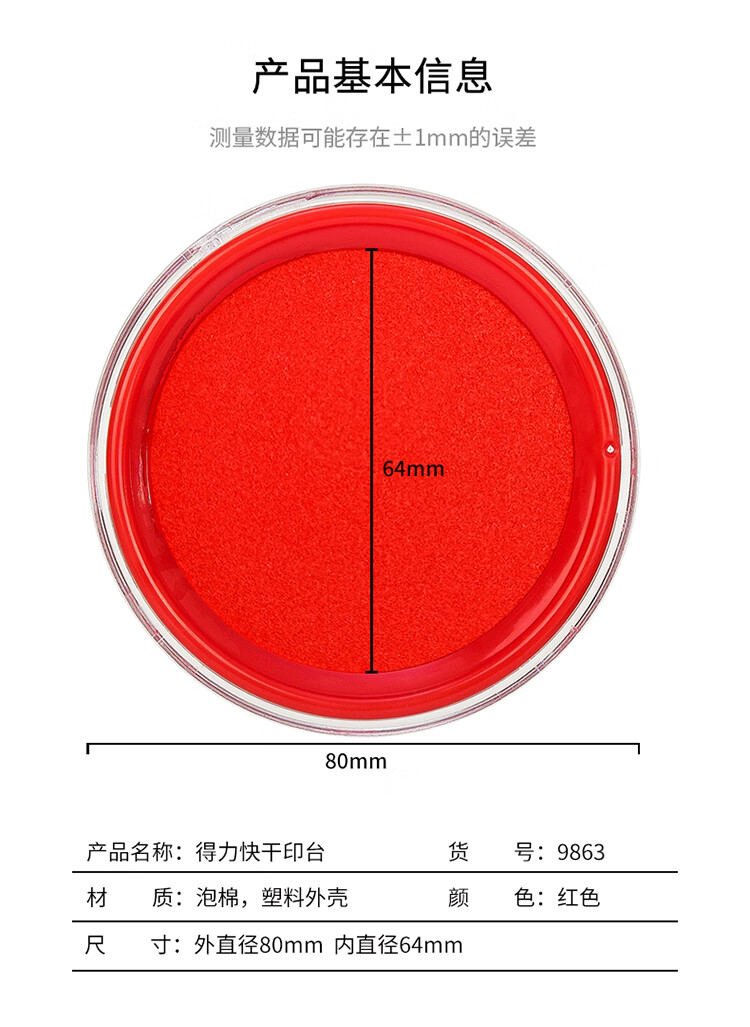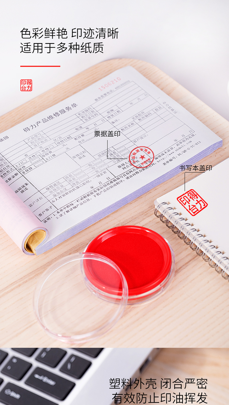 Deli 9863 Quick-drying ink pad round financial quick-drying ink pad (1 piece) (red)