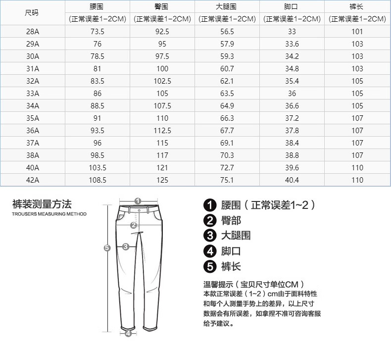 USA(inch) 28-30 30-32 32-34 34-38 38-42