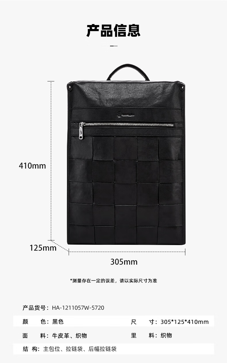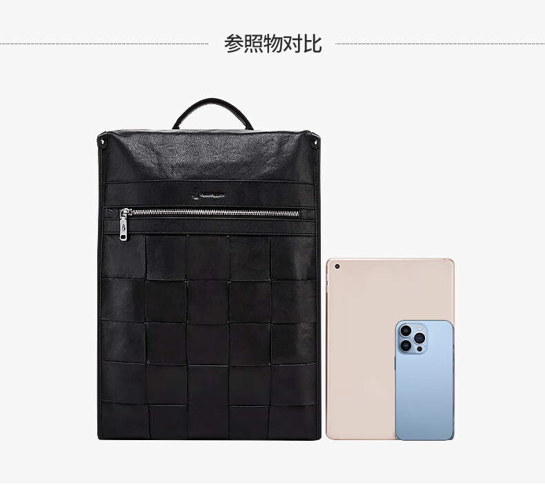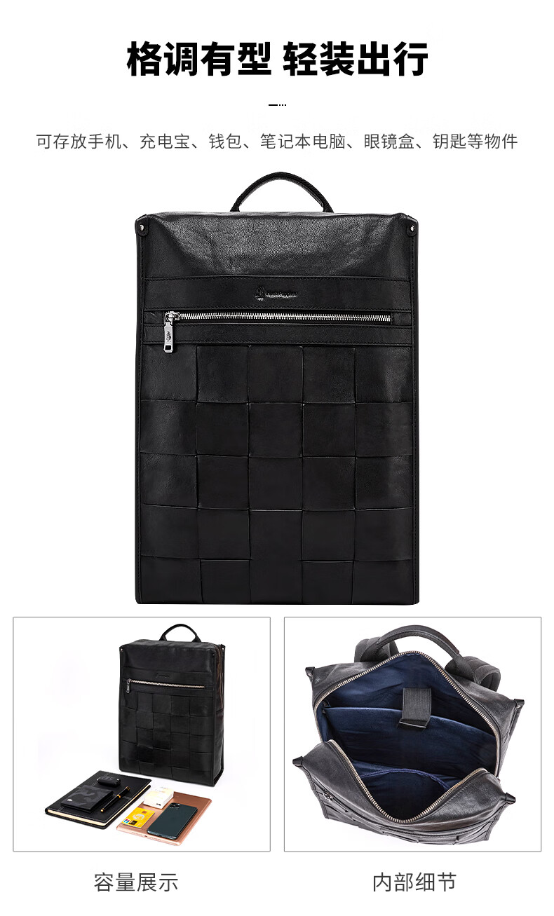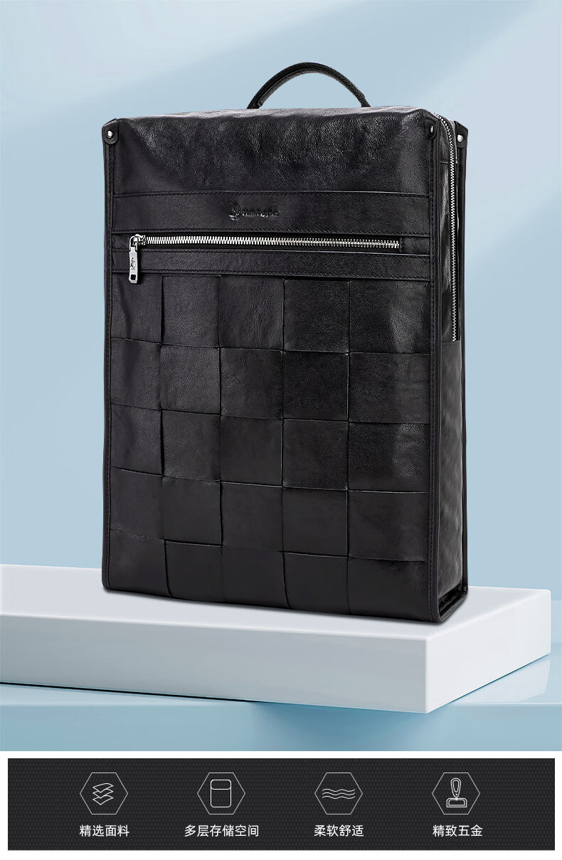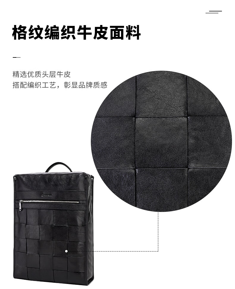 暇步士(Hush Puppies)男士双肩包格纹编织牛皮背包大容量电脑包生日礼物送男友