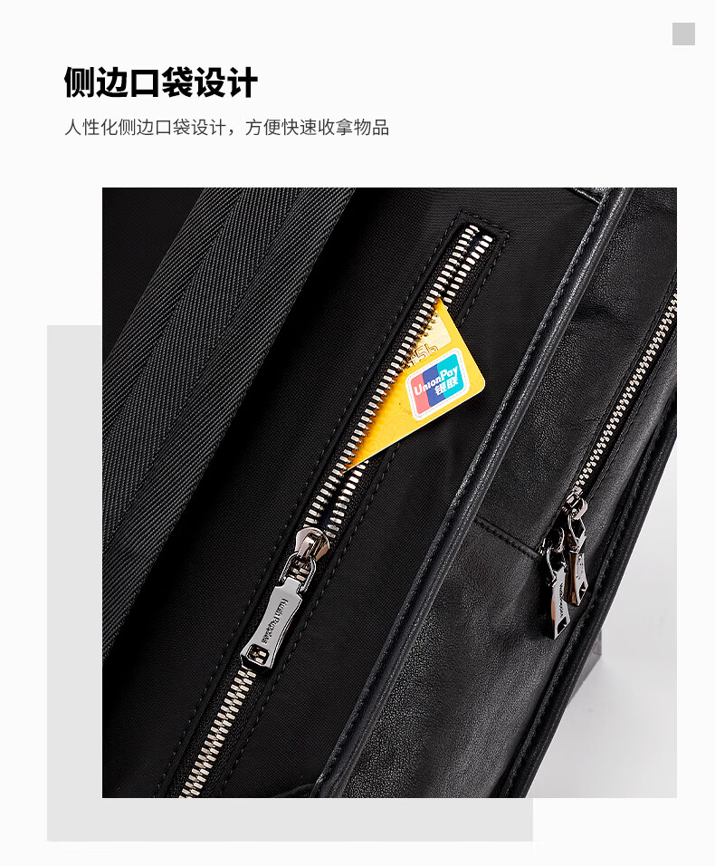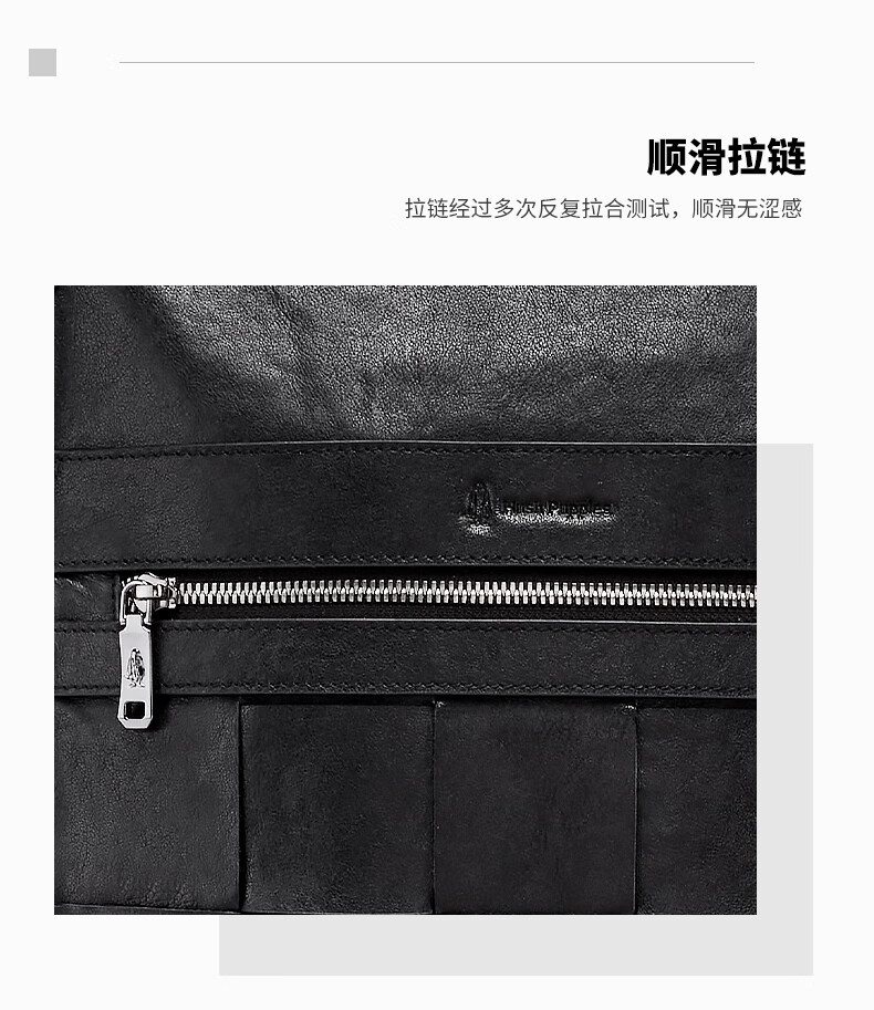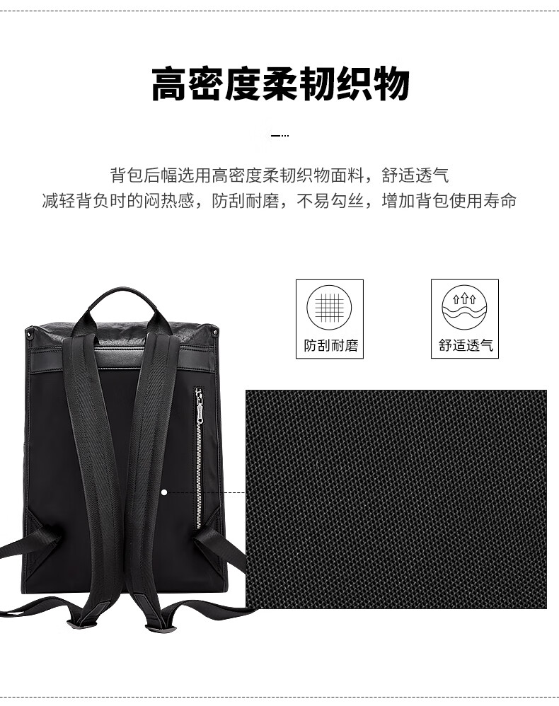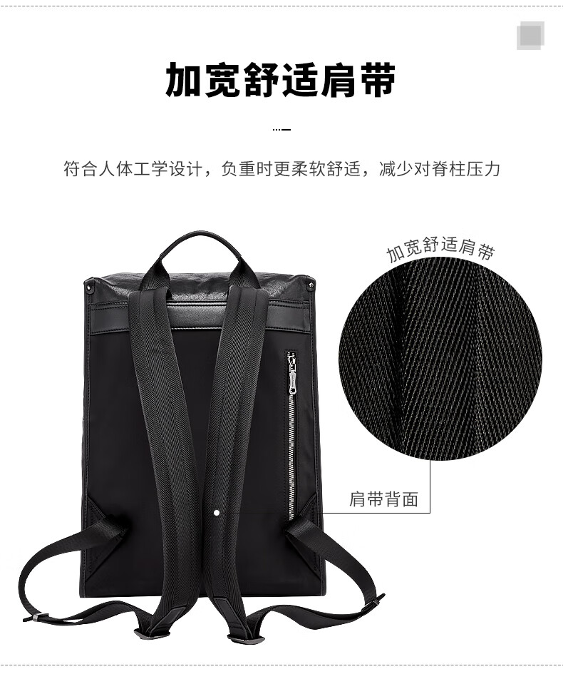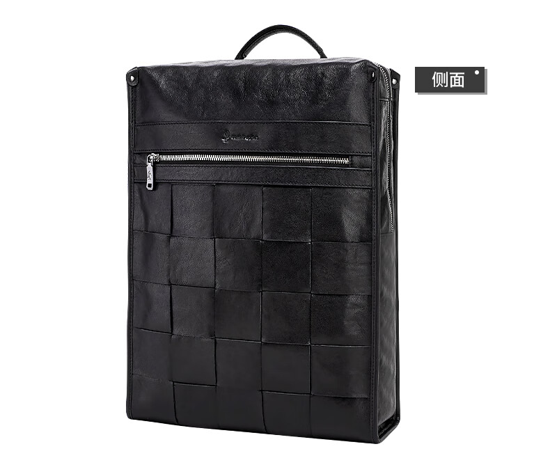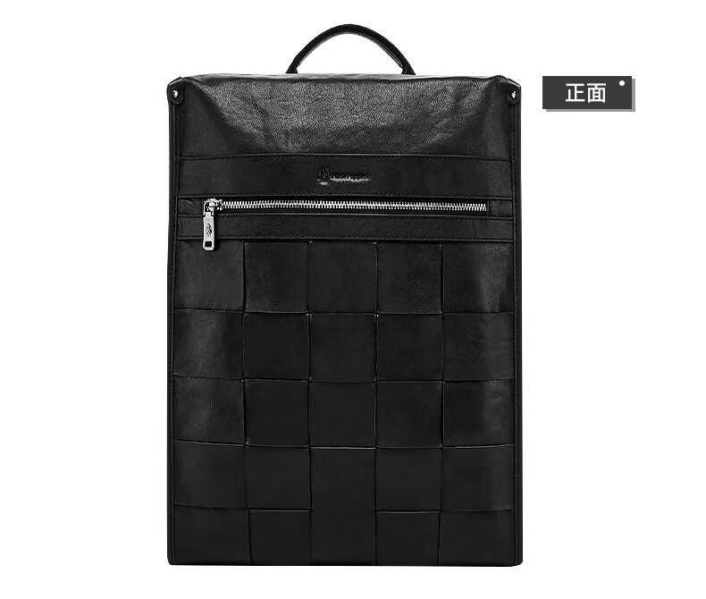暇步士(Hush Puppies)男士双肩包格纹编织牛皮背包大容量电脑包生日礼物送男友