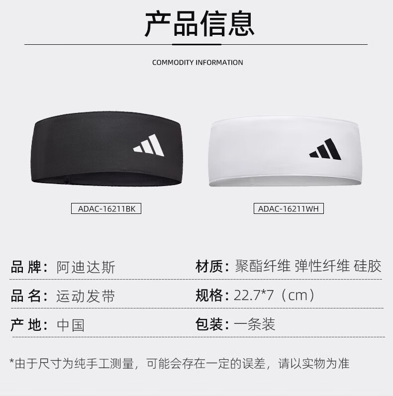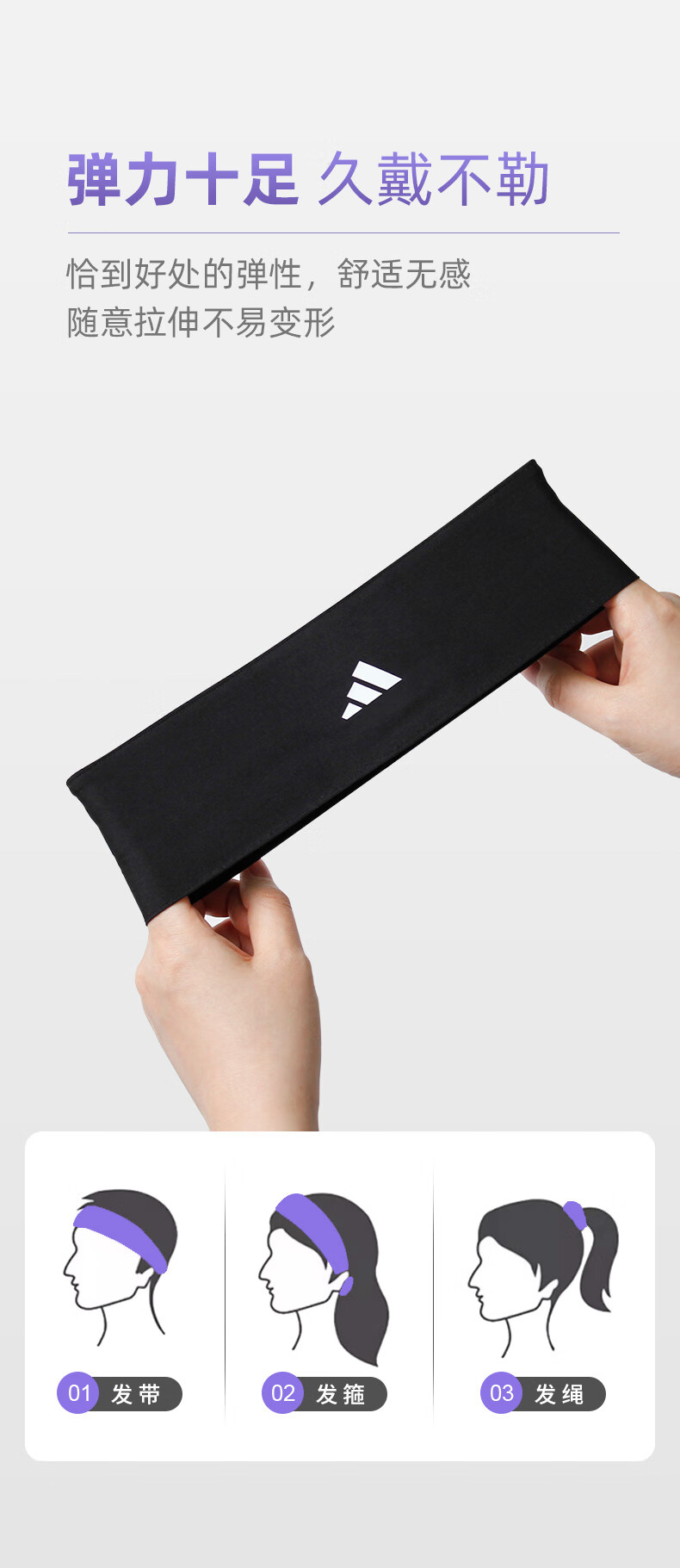 阿迪达斯(adidas)运动发带男女止汗吸汗导汗头带跑步篮球羽毛球网球头巾头箍戴束
