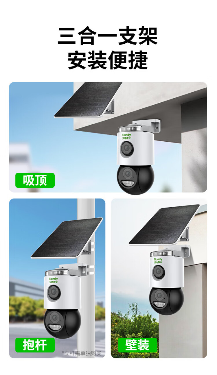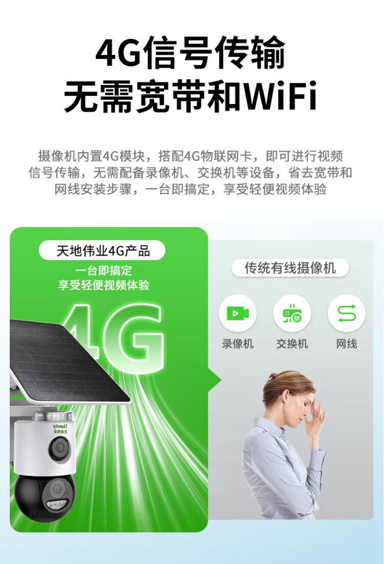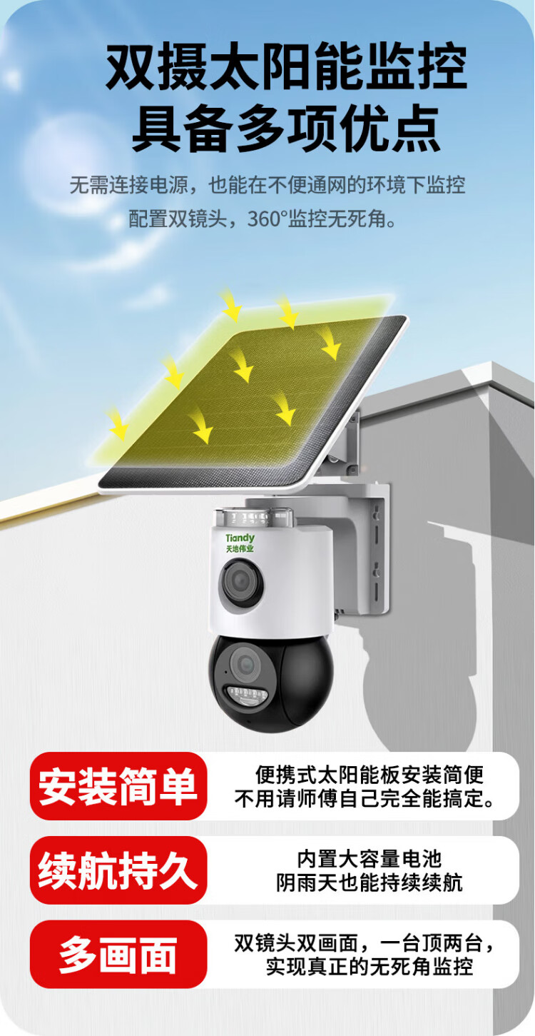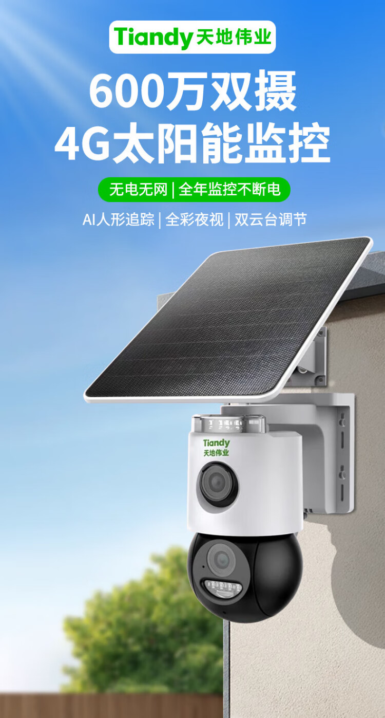 天地伟业太阳能摄像头4g室外监控器家用360度无死角带夜视全景全彩追踪无电无网户外无需连wifi免插电