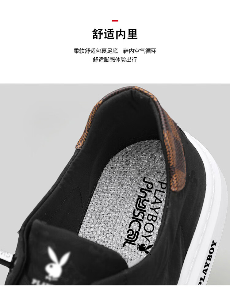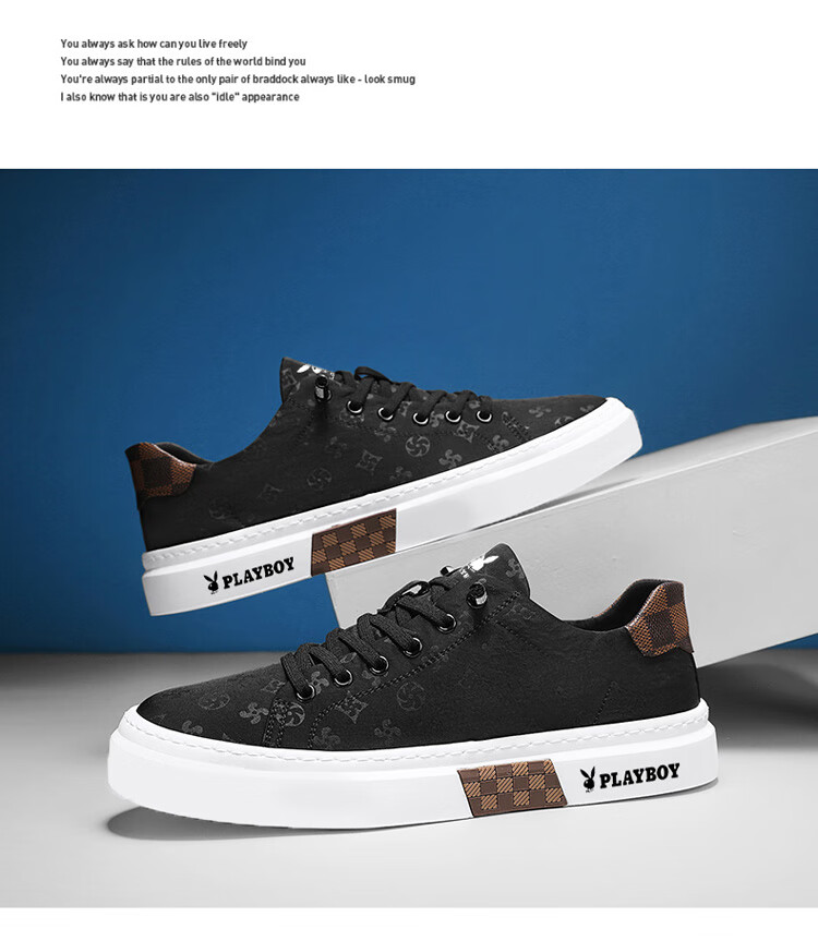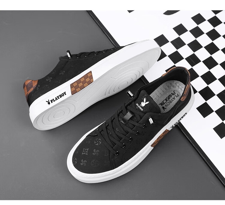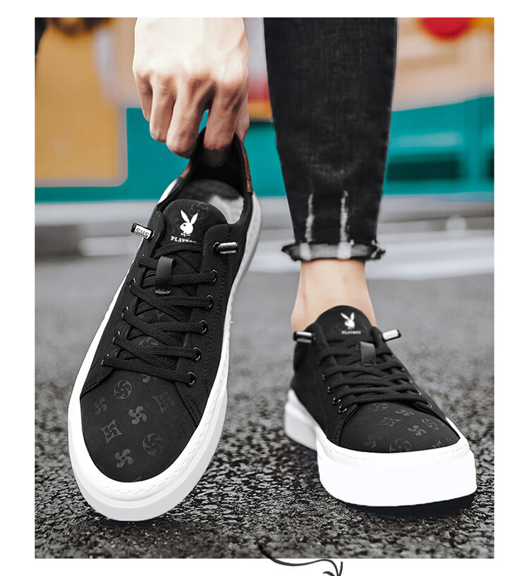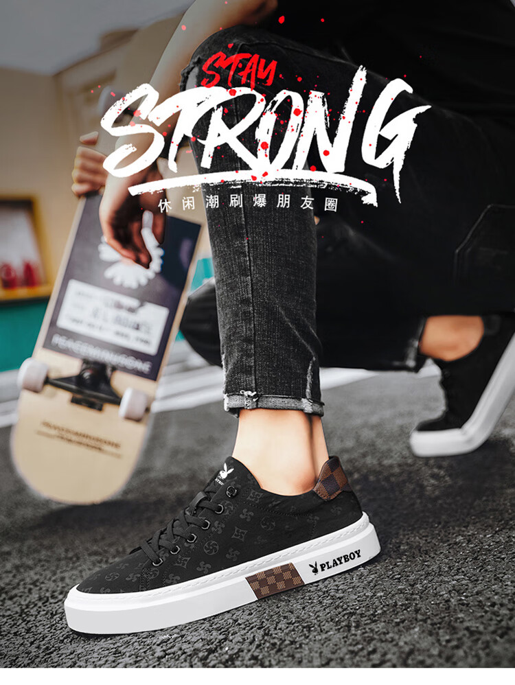 Playboy (PLAYBOY) Men's Shoes 2025 Autumn and Winter Canvas Shoes Men's Versatile Sneakers Comfortable Travel Shoes Casual Sports Shoes Black 42
