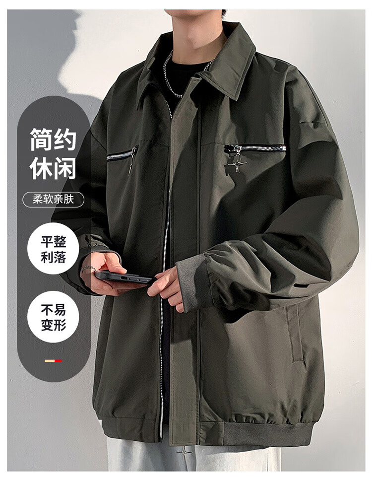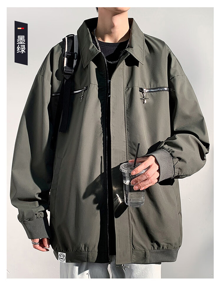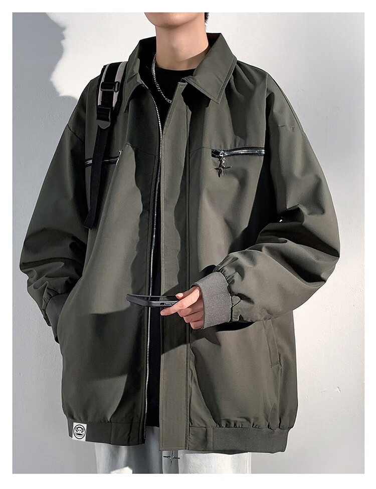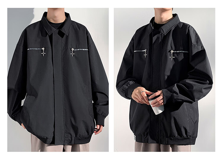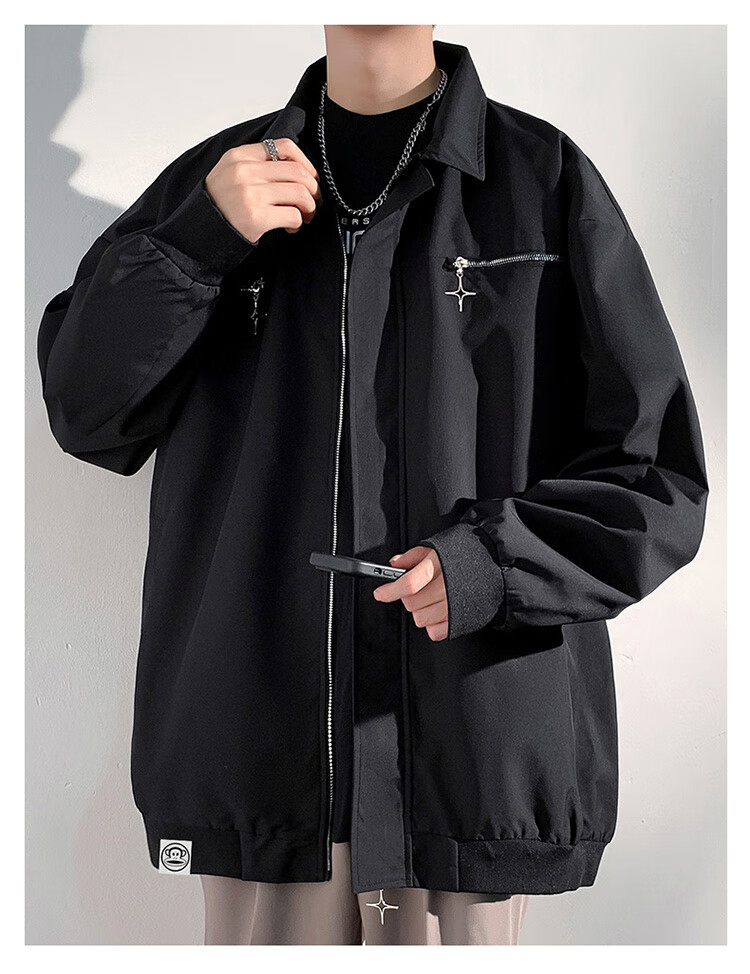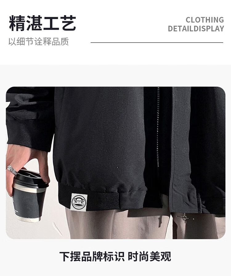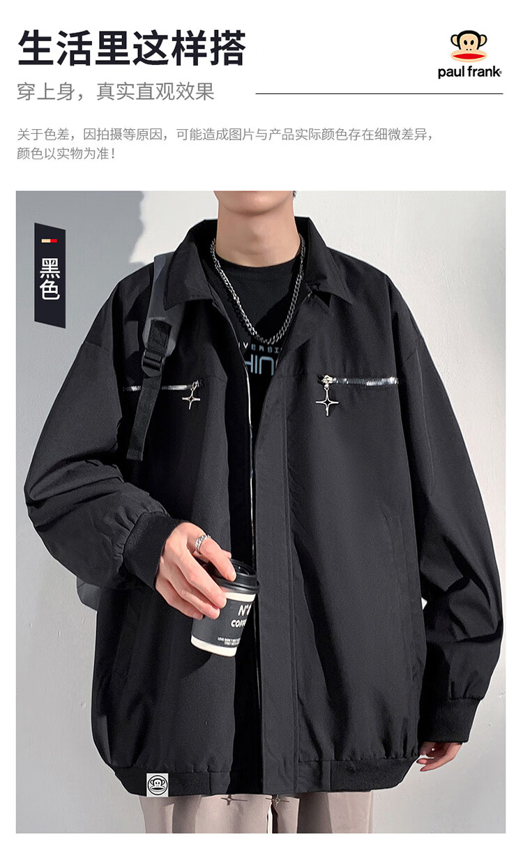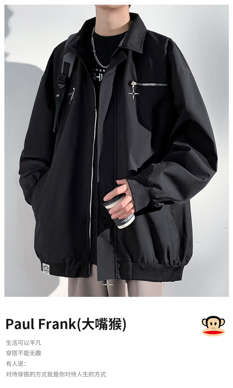 Chaqueta Paul Frank Chaqueta Casual de Primavera y Otoño para Hombre Tops Sueltos de Marca de Moda para Hombre Negro XL