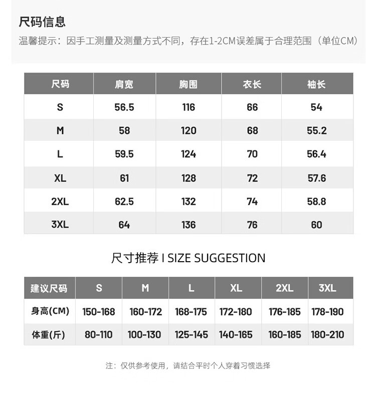 China (cm) 165 / 88-90 170 / 96-98 175 / 108-110 180 / 118-122 185 / 126-130