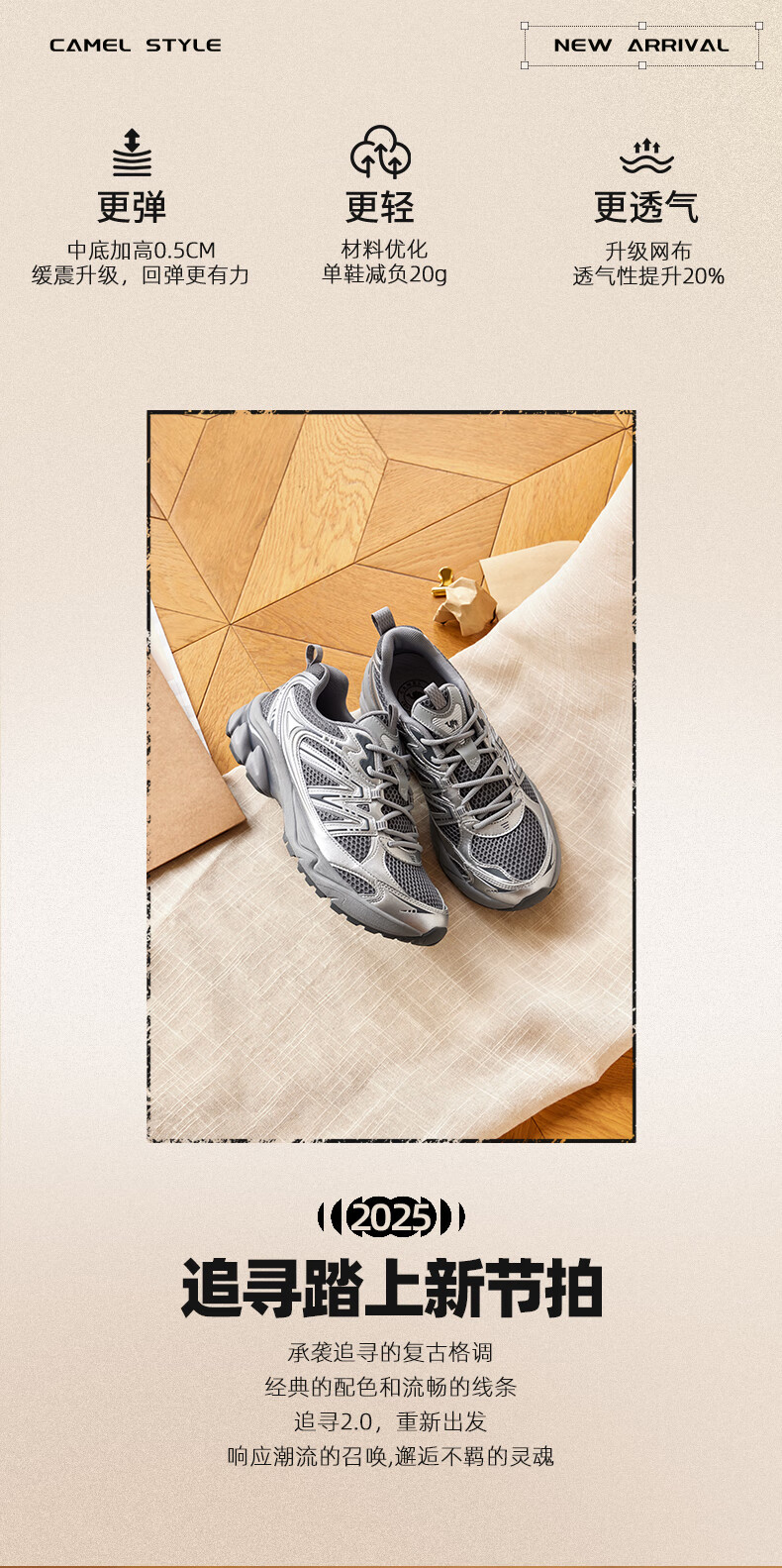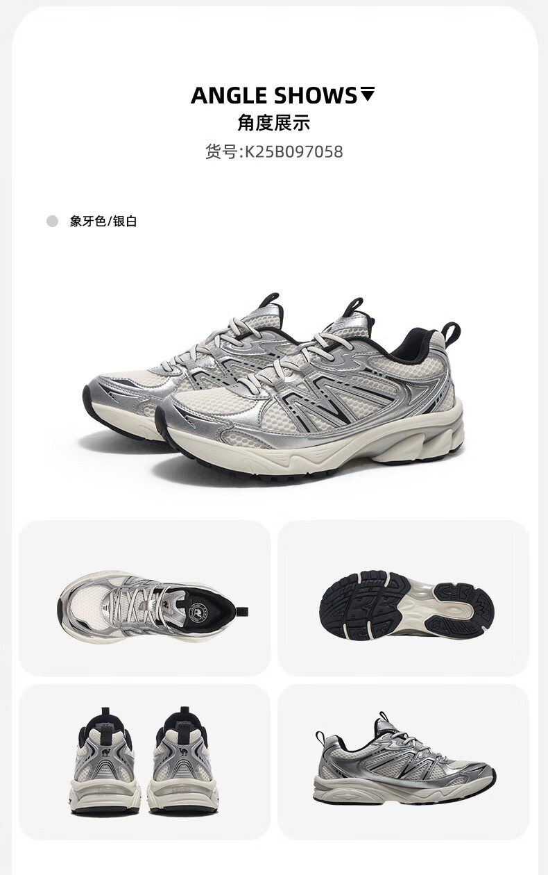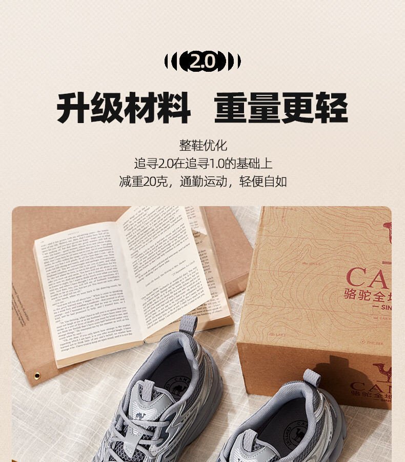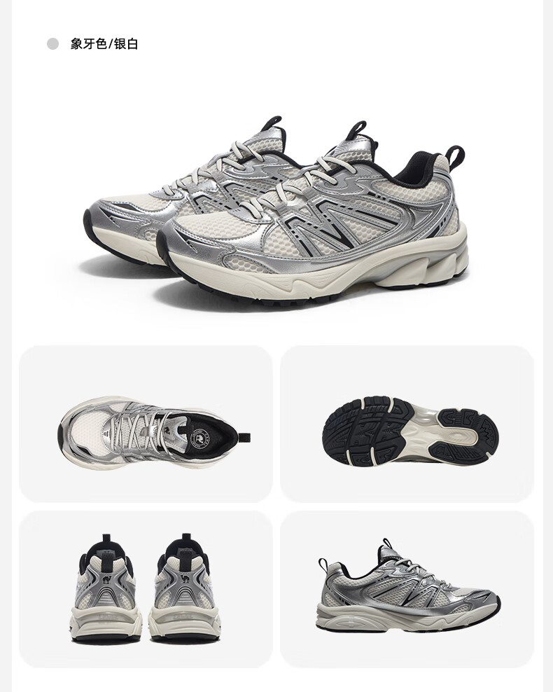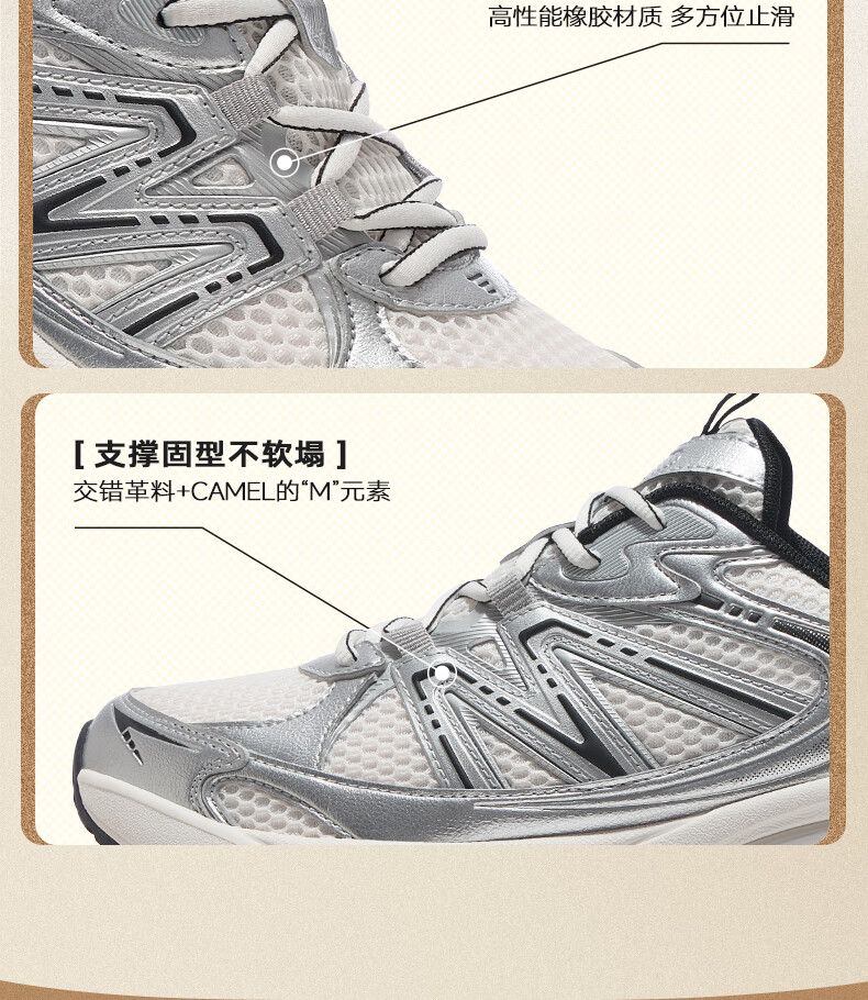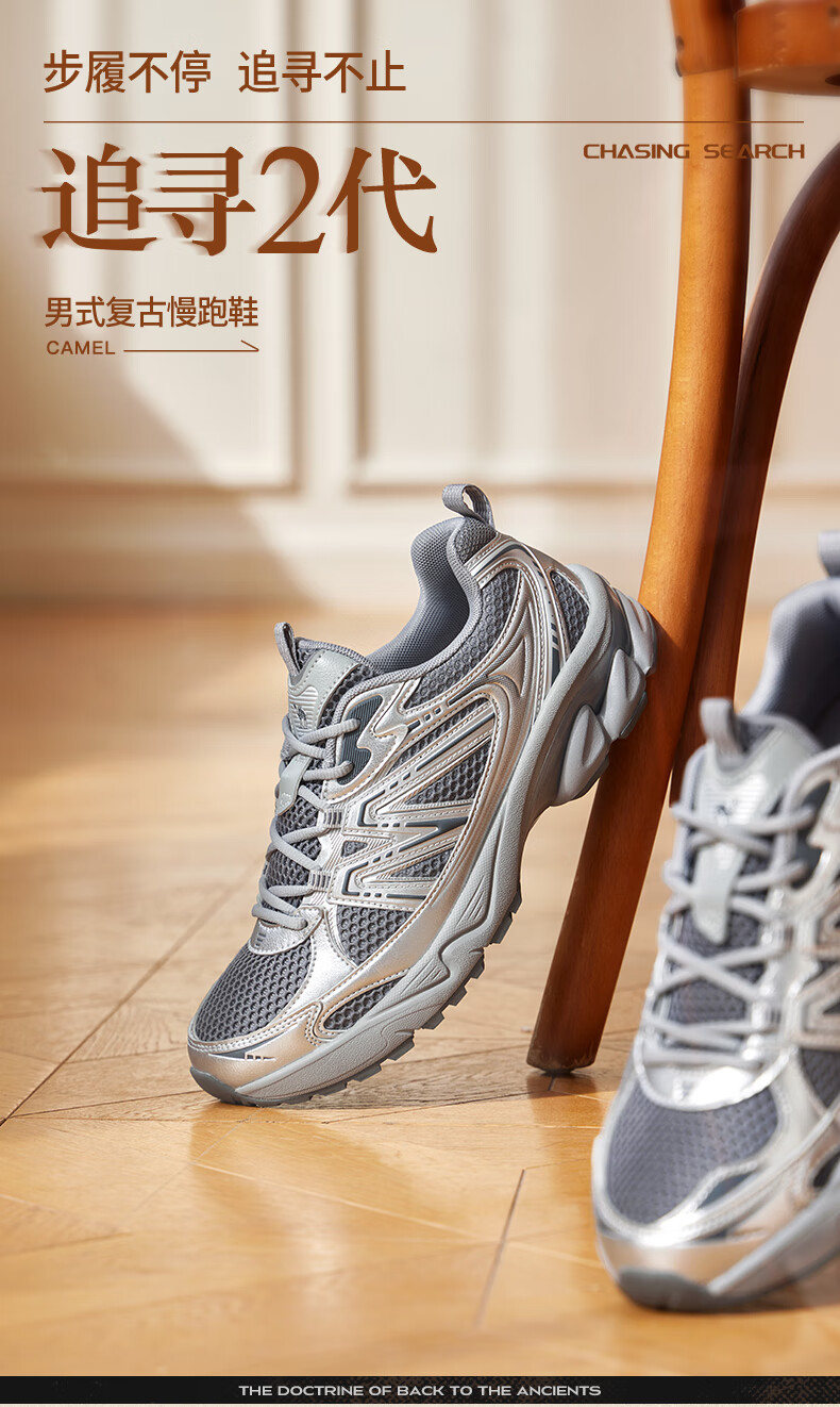 骆驼(CAMEL)追寻2代慢跑男鞋网面增高复古运动鞋子 K15B09L7002 象牙色/银 41