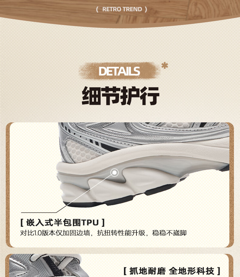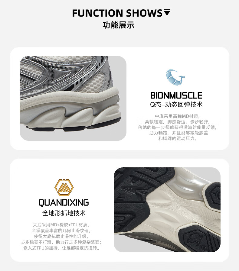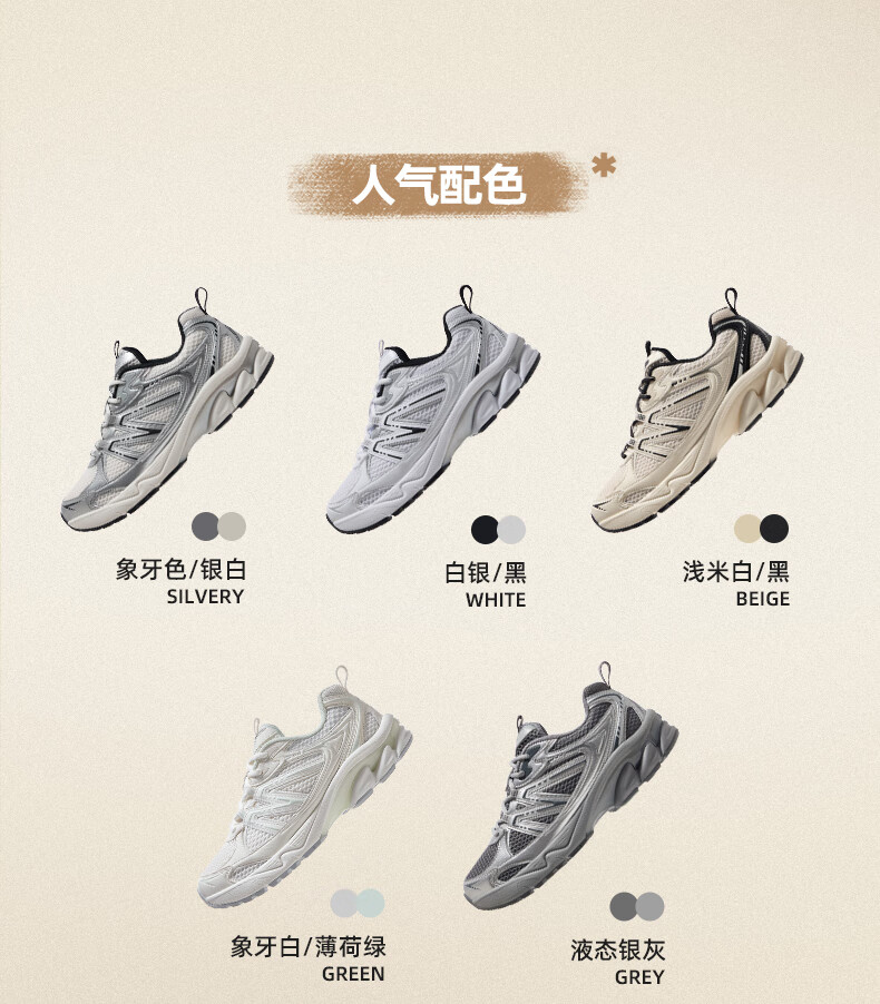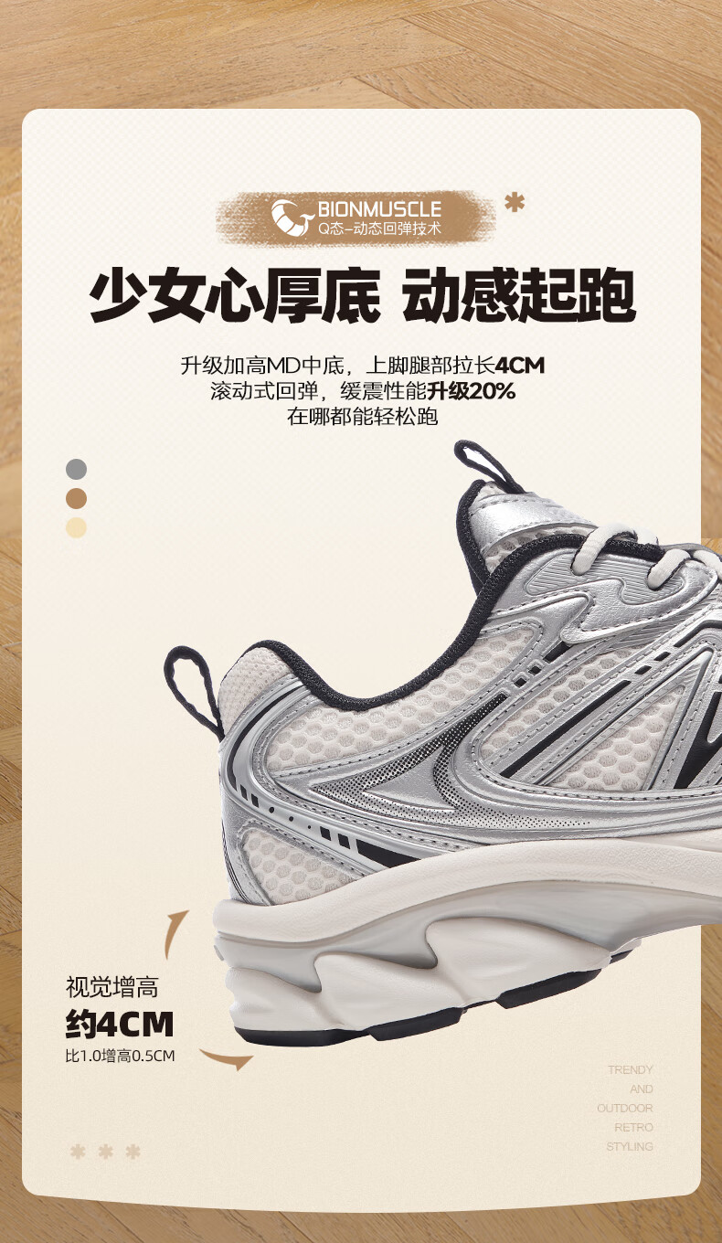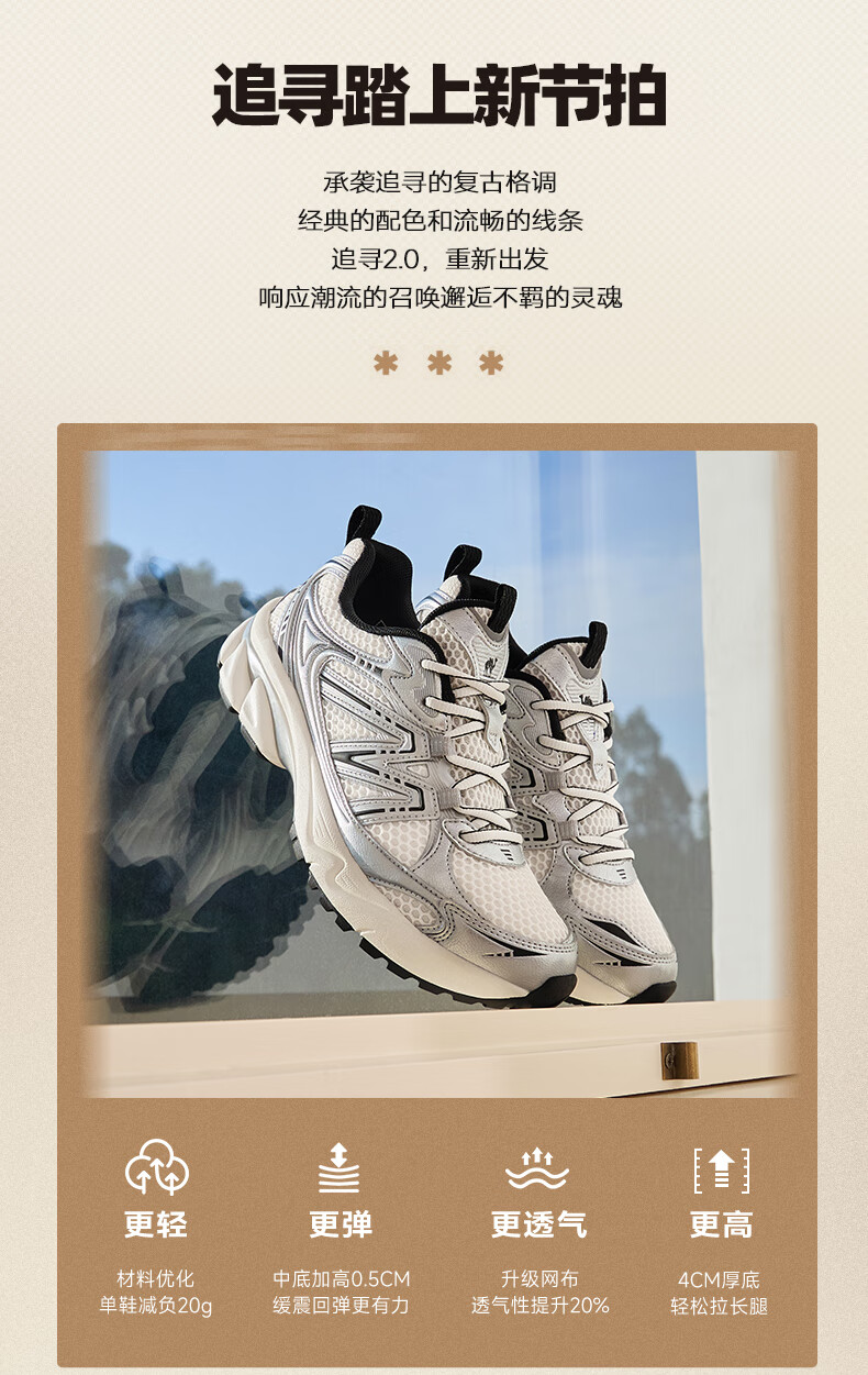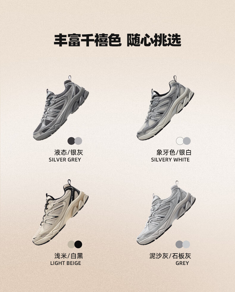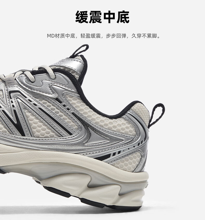 骆驼(CAMEL)追寻2代慢跑男鞋网面增高复古运动鞋子 K15B09L7002 象牙色/银 41