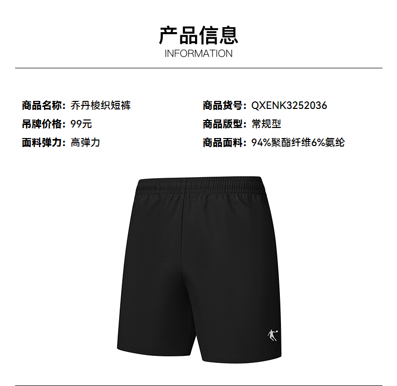乔丹短裤男裤运动裤子男夏季透气速干吸湿梭织五分裤男休闲裤
