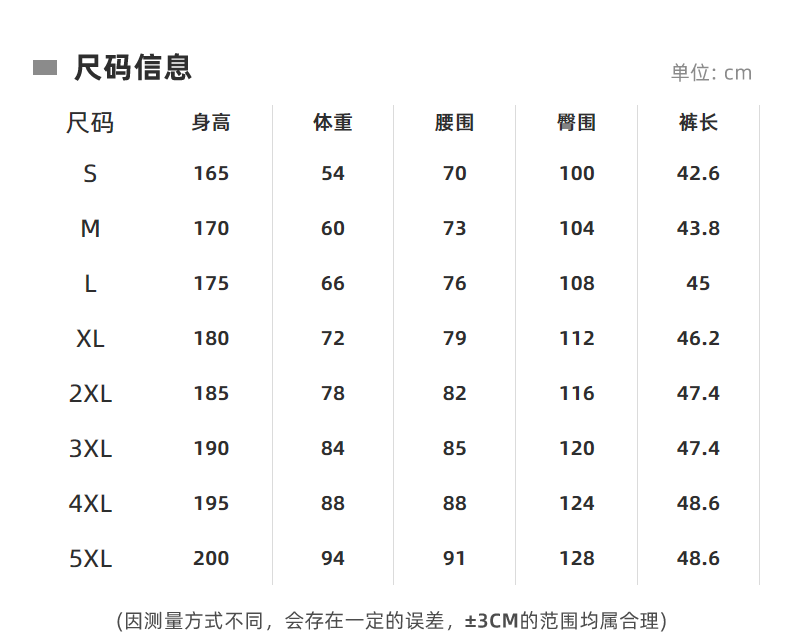 Outseam (cm) 99 cm 101.5 cm 104 cm 106.5 cm 109 cm