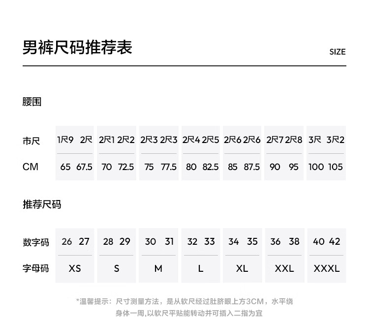 USA(inch) 28-30 30-32 32-34 34-38 38-42
