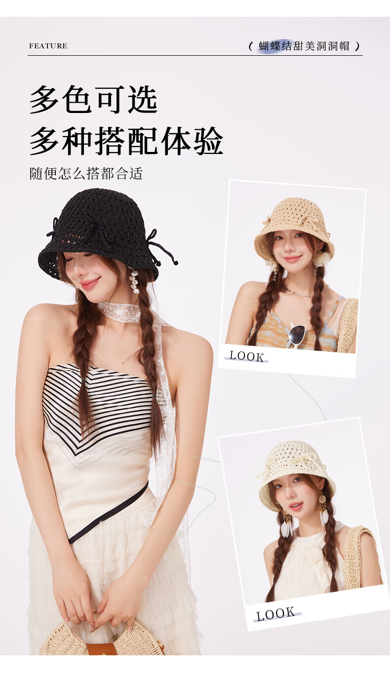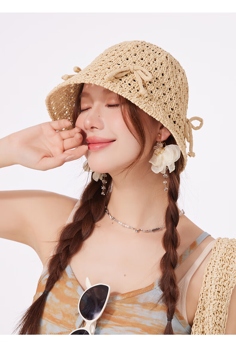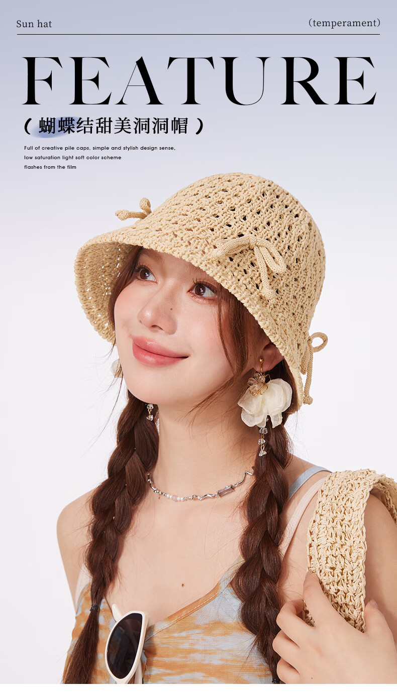 CACUSS chapeau de soleil femme printemps et été chapeau de soleil crochet chapeau de paille creux chapeau cool chapeau de soleil vacances chapeau de pêcheur chapeau de plage