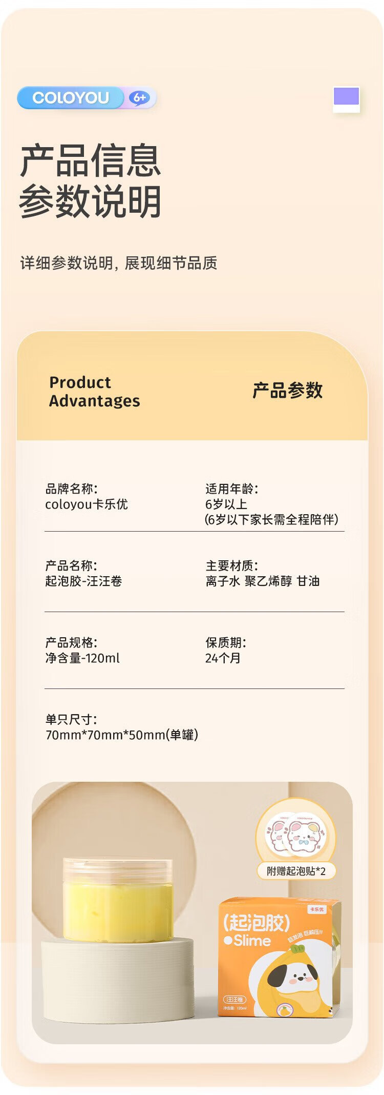 Coloyou foaming glue yellow Want Want roll hug milk slime crystal mud children DIY safe non-toxic non-stick hand decompression boy toy gift