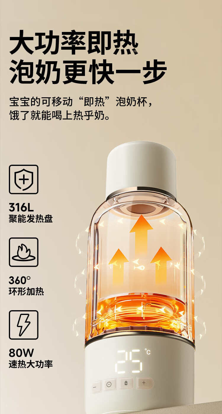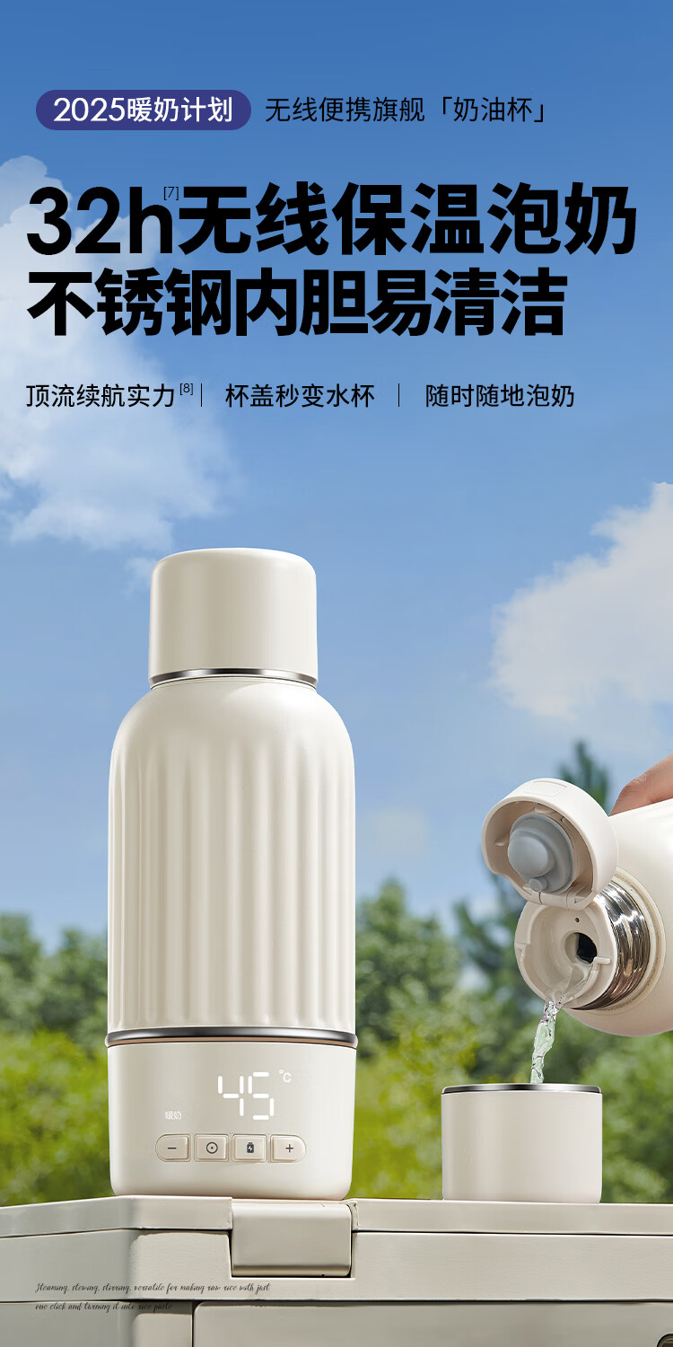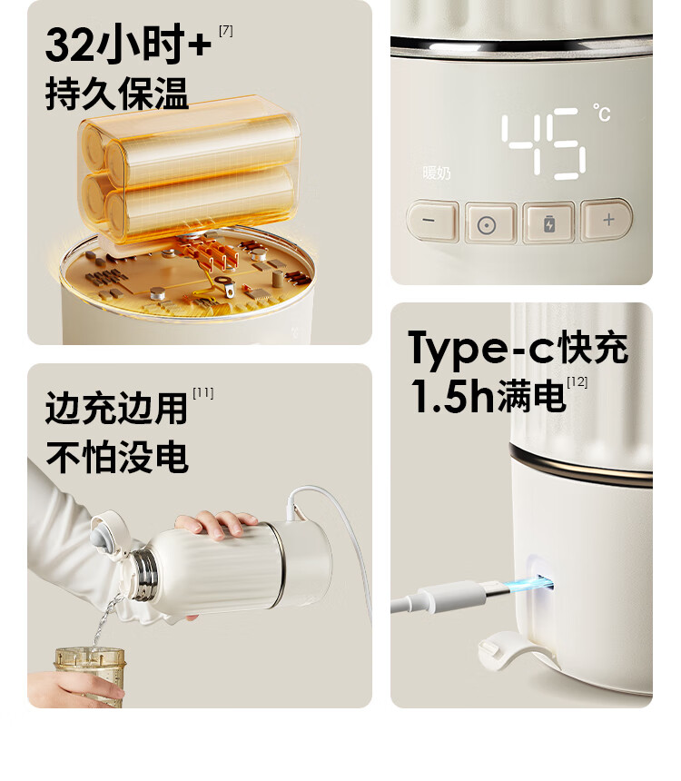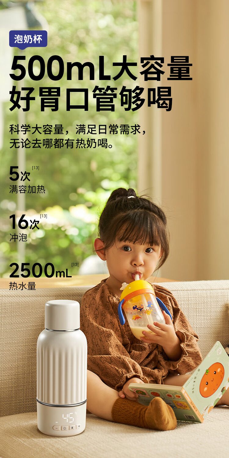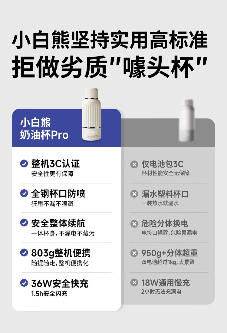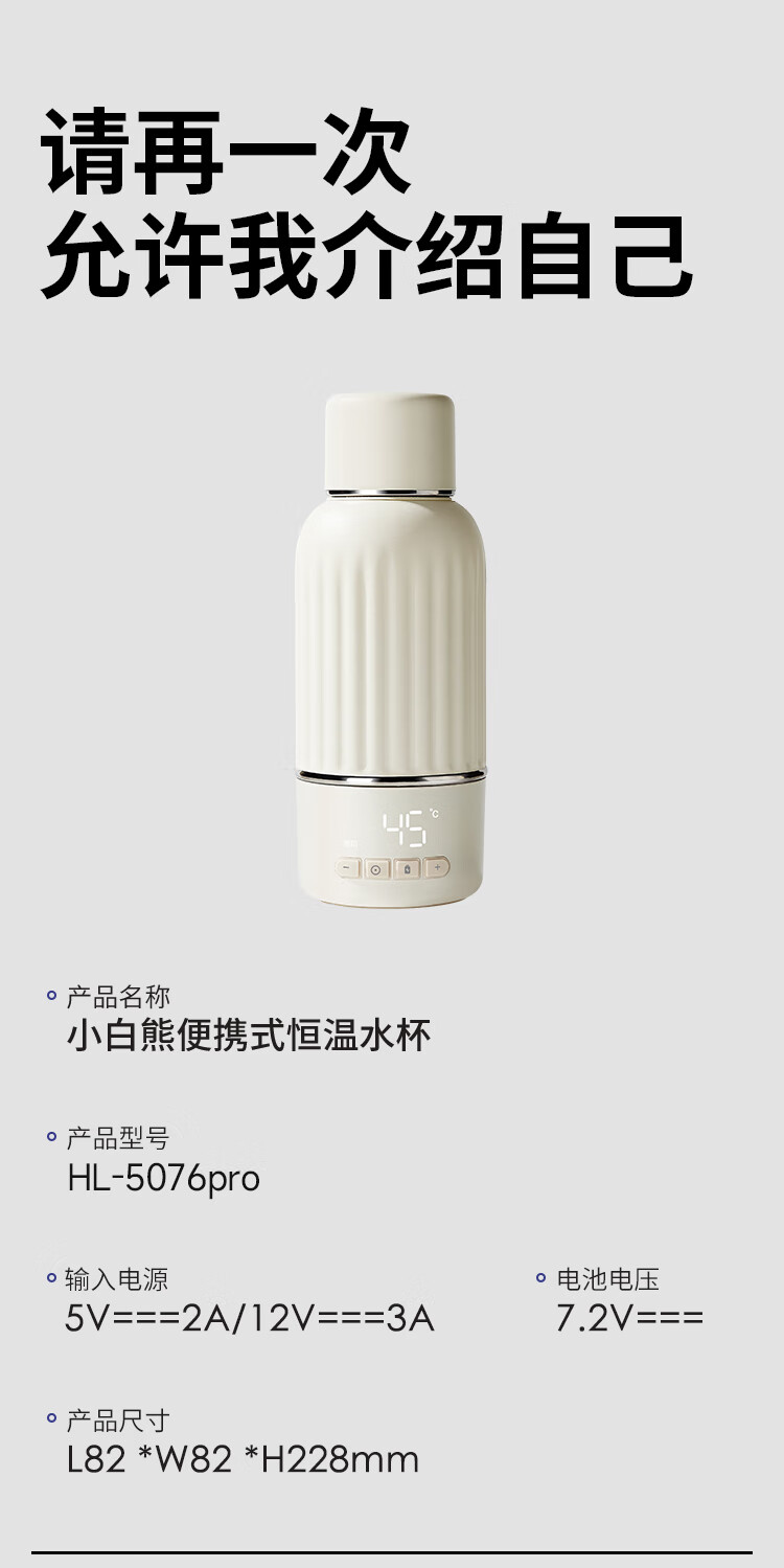 小白熊无线便携式恒温壶婴儿水壶保温水杯外出泡奶烧水杯500mL5076Pro