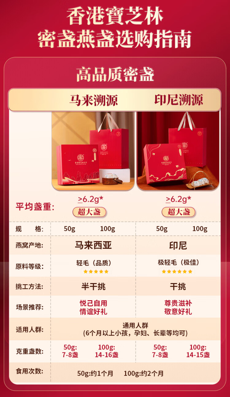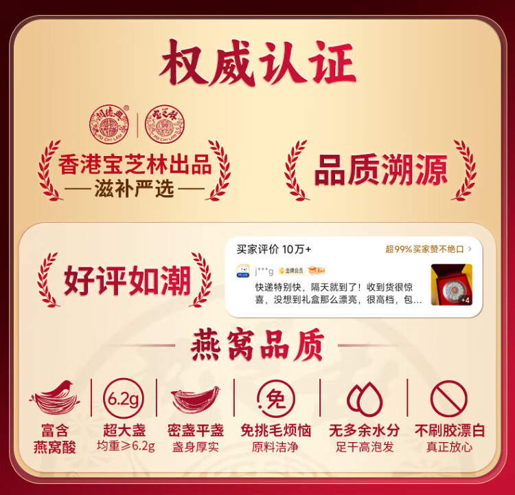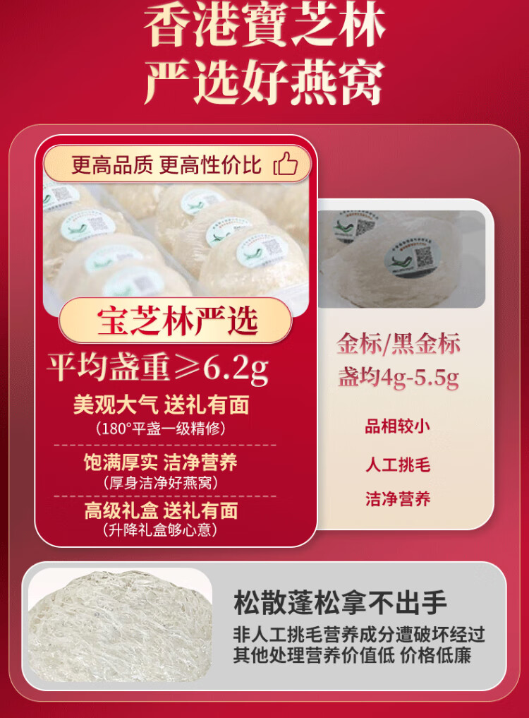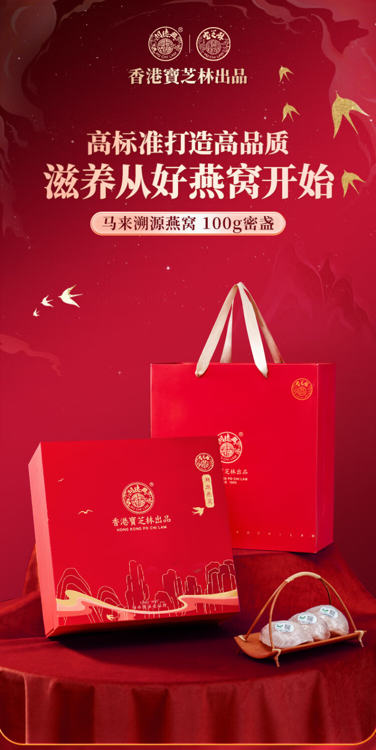 关德兴寶芝林干燕窝100g礼盒特级燕窝干盏密盏送孕妇滋补女友中秋节礼物