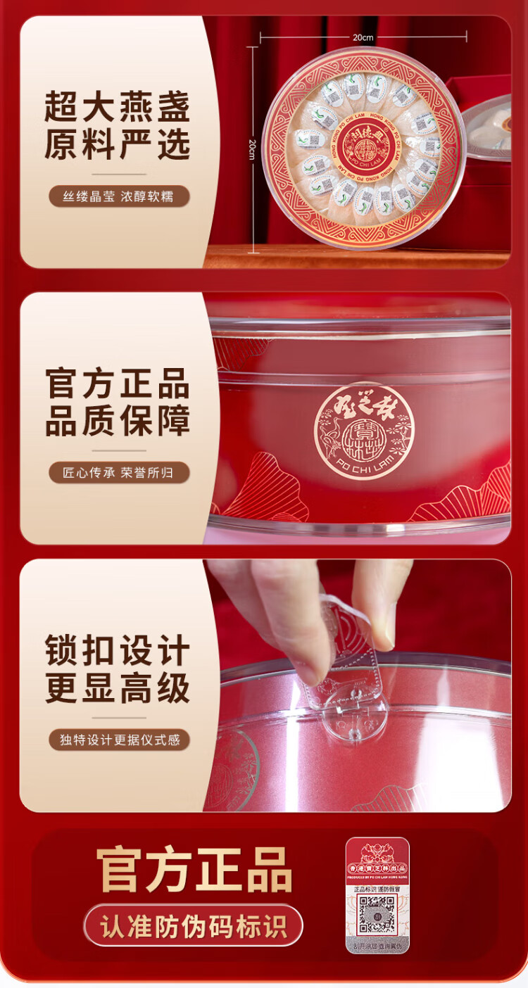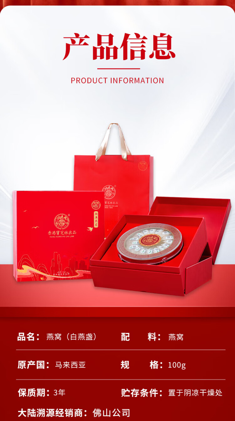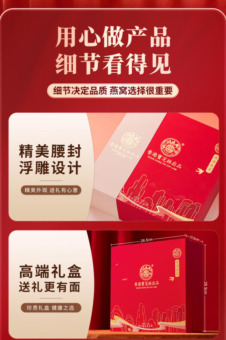 关德兴寶芝林干燕窝100g礼盒特级燕窝干盏密盏送孕妇滋补女友中秋节礼物
