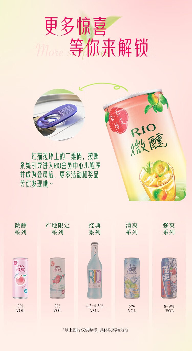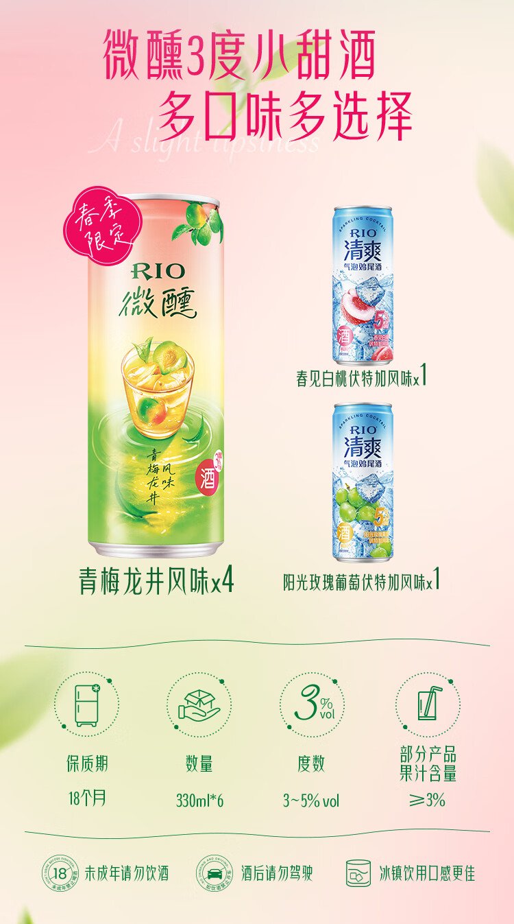 锐澳(RIO) 鸡尾酒 洋酒 果酒 预调酒 微醺3度清爽8度春季限定组合装330ml*6