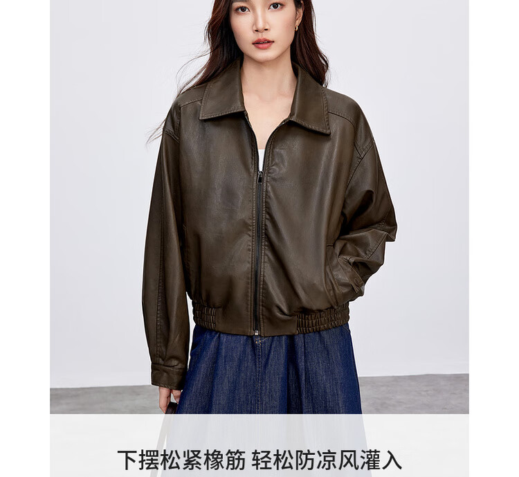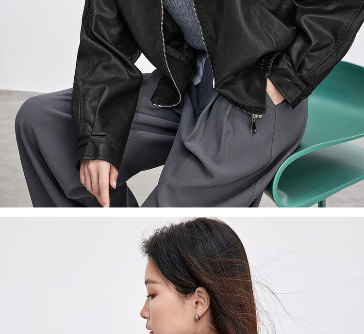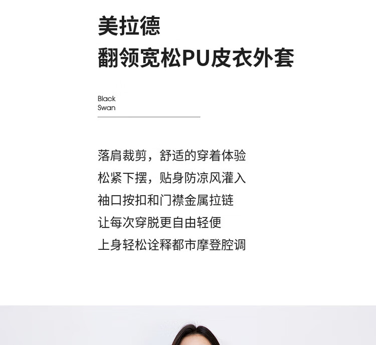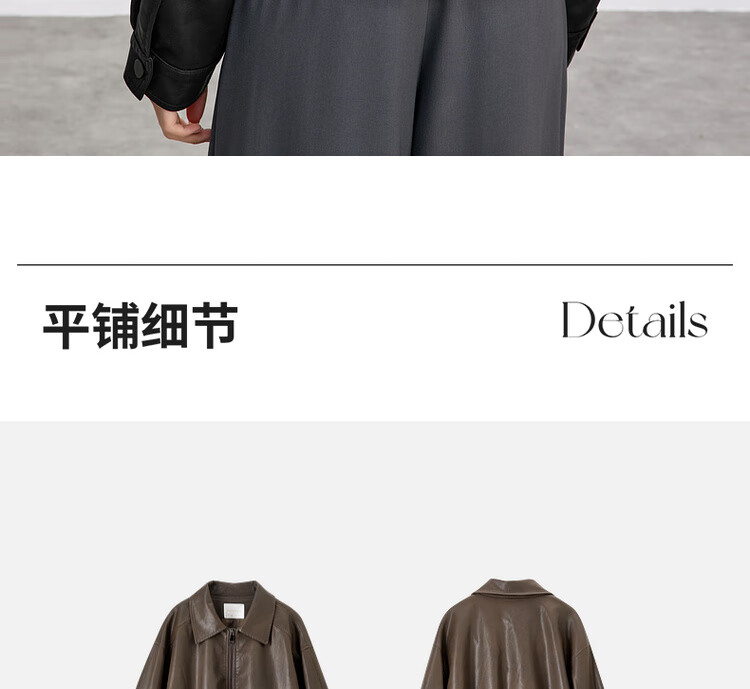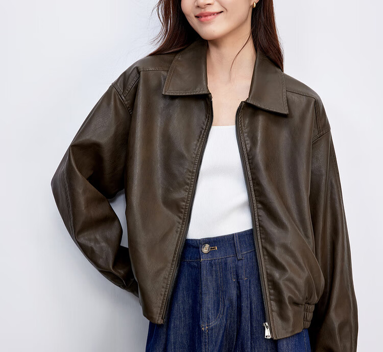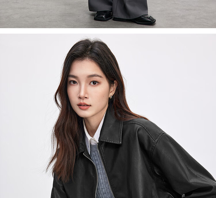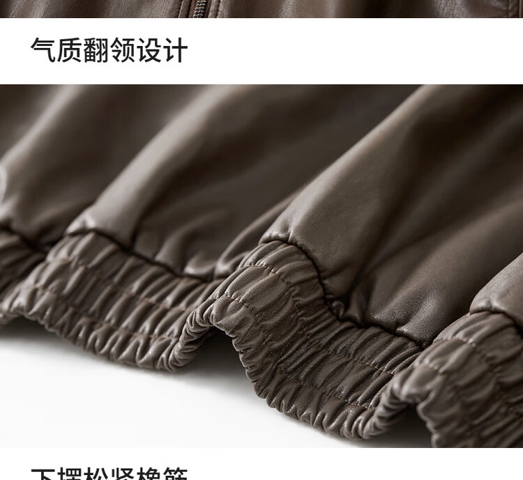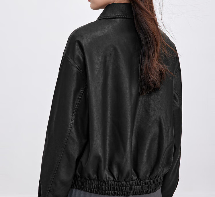 Shandubila Urban Commuting PU Leather Jacket Women's Spring Loose Slim Jacket Lapel Motorcycle Jacket Black M