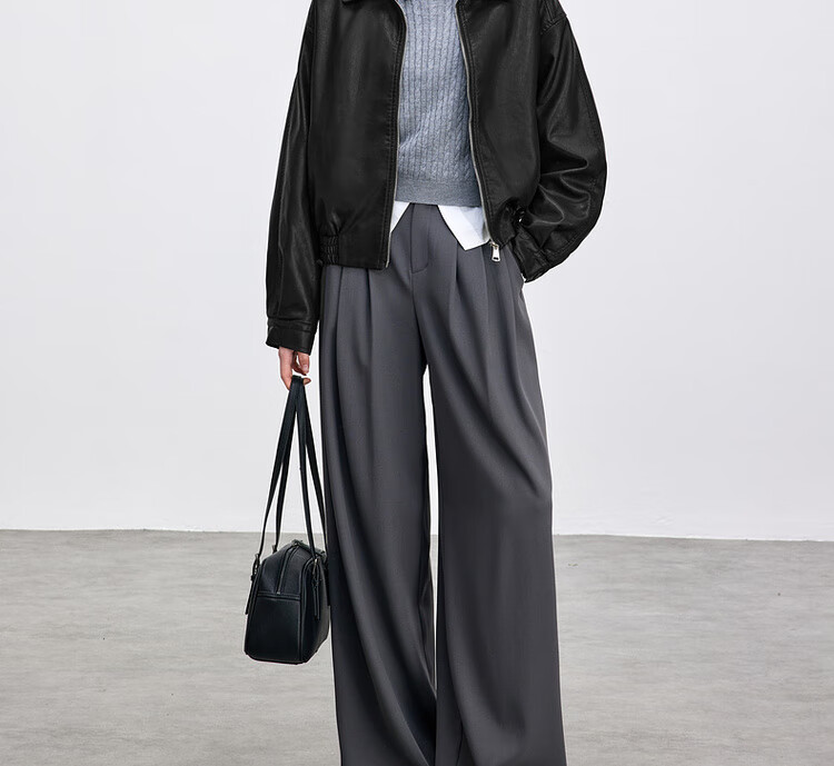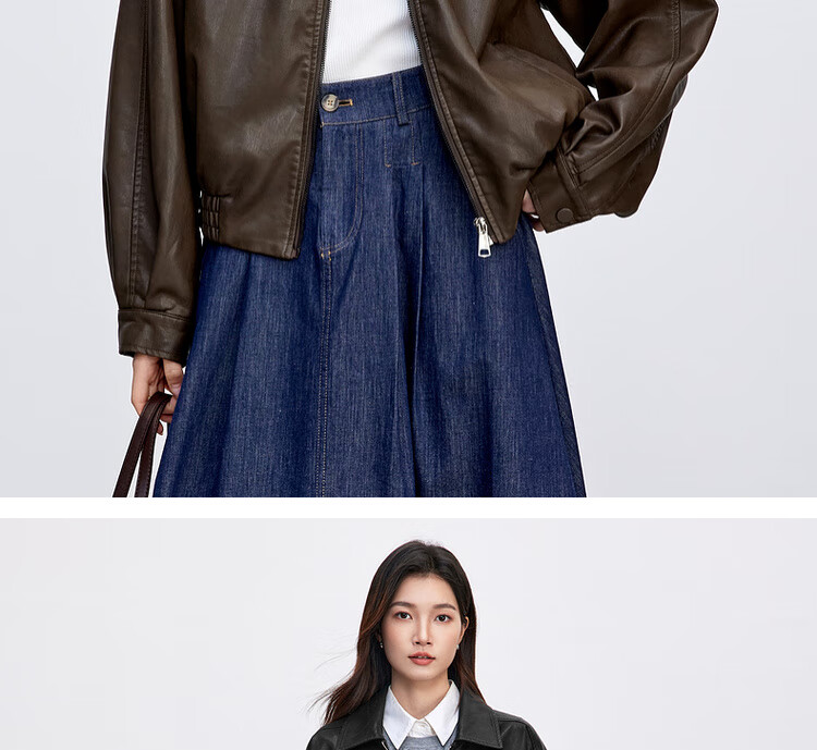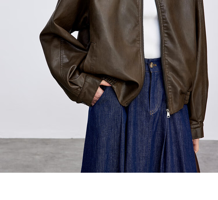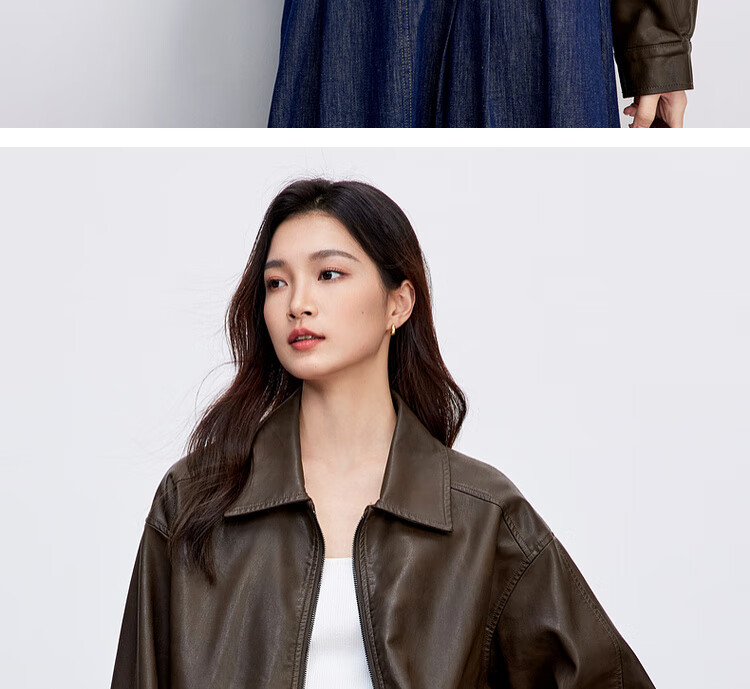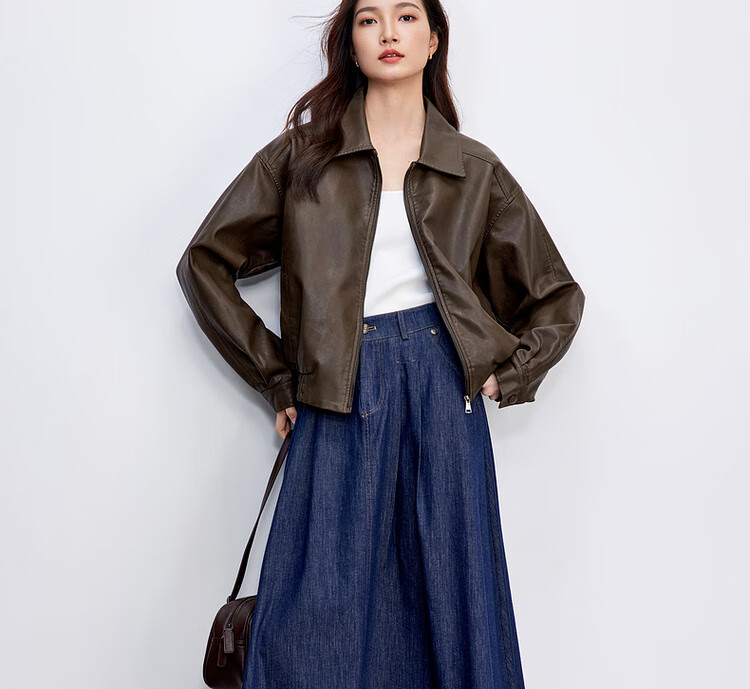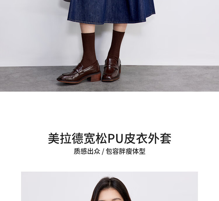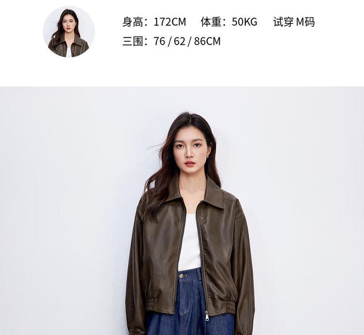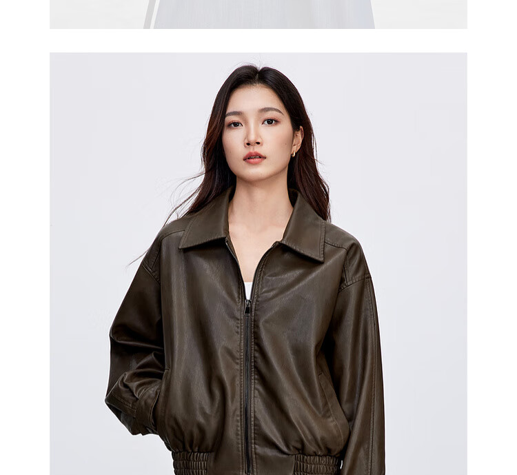 Shandubila Urban Commuting PU Leather Jacket Women's Spring Loose Slim Jacket Lapel Motorcycle Jacket Black M