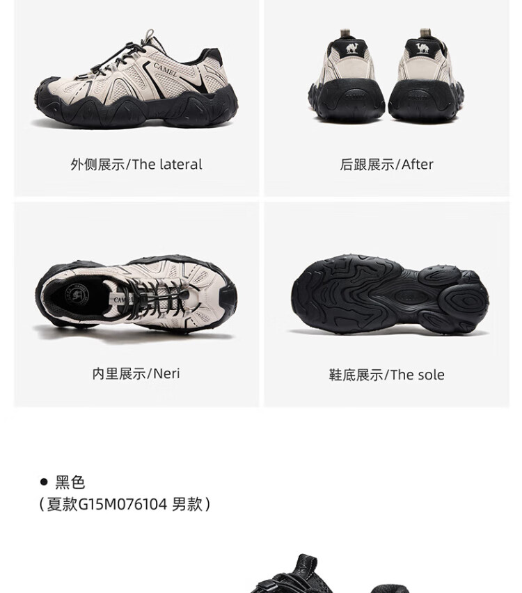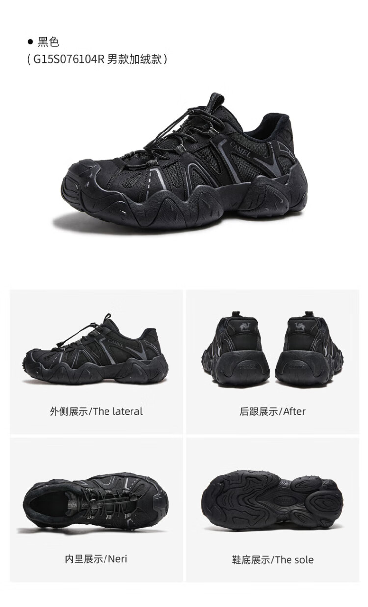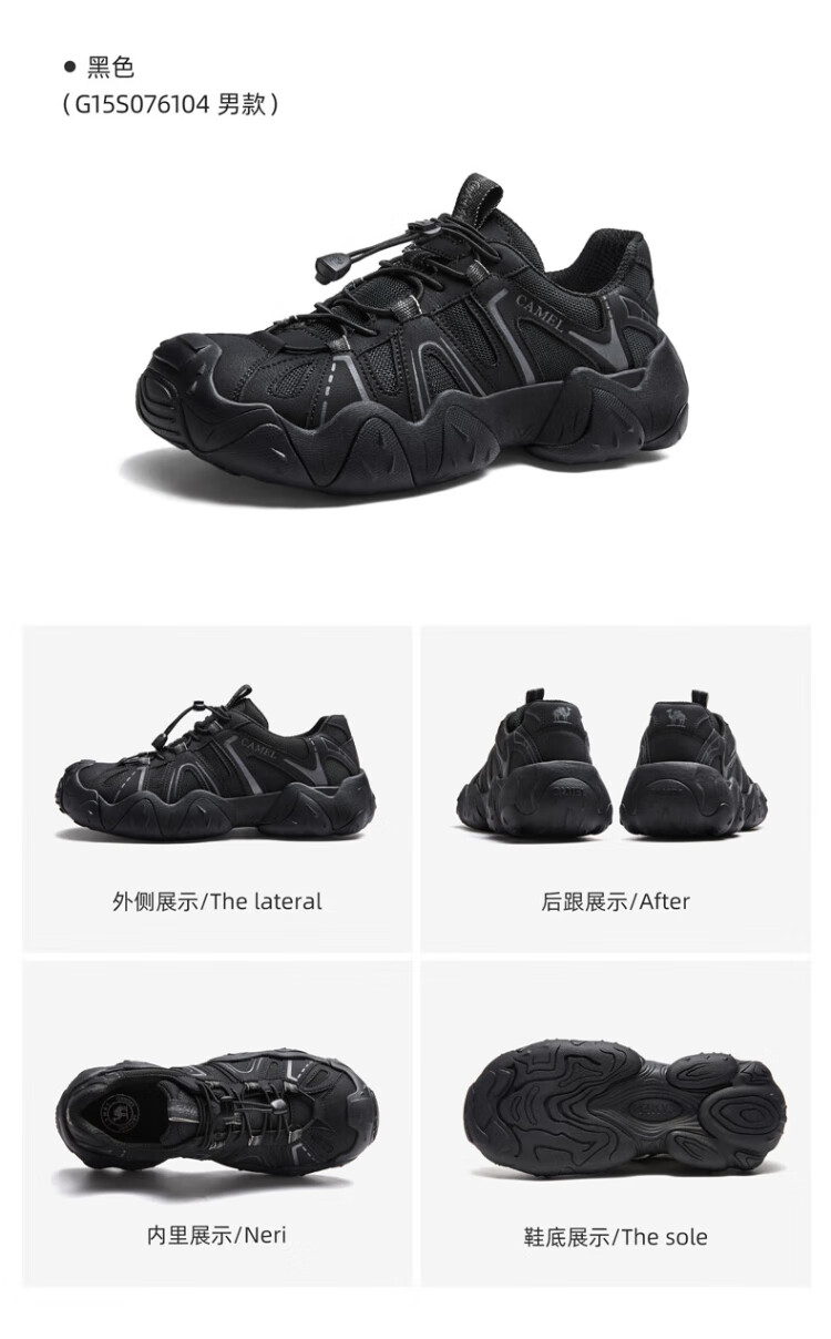 Camel (CAMEL) Yunshan 1.ª generación Otoño al aire libre Senderismo y montañismo Zapatos casuales, feos y lindos para parejas G15S076104 Negro 42