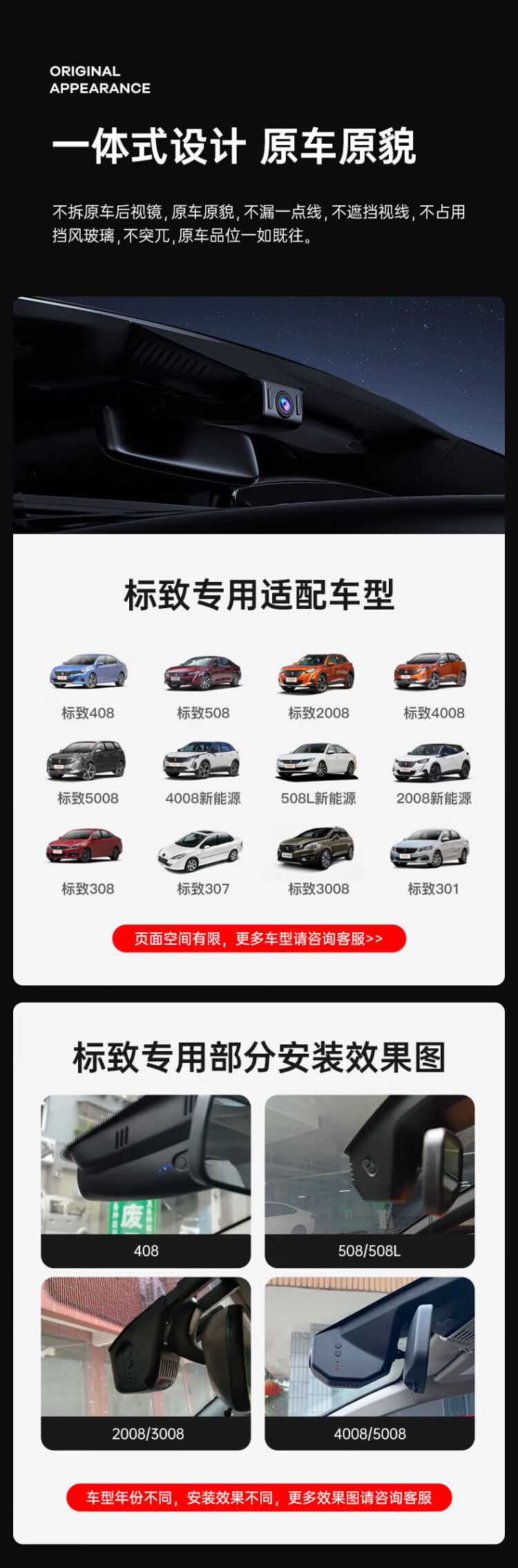 海康威视标致行车记录仪3008/5008/408/4008/508/2008专用高清免走线