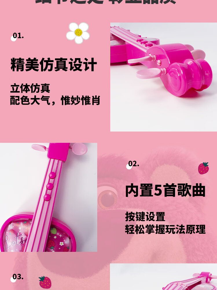 Disney Erdbeerbär Violine Groß 3-6-9 Jahre altes Baby Früherziehung Aufklärung pädagogisches Musikinstrument Spielzeug Geburtstagsgeschenk