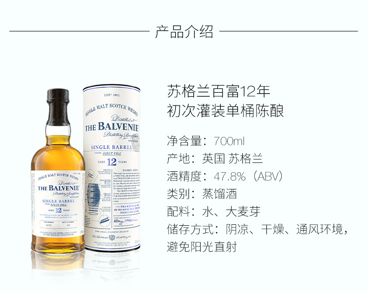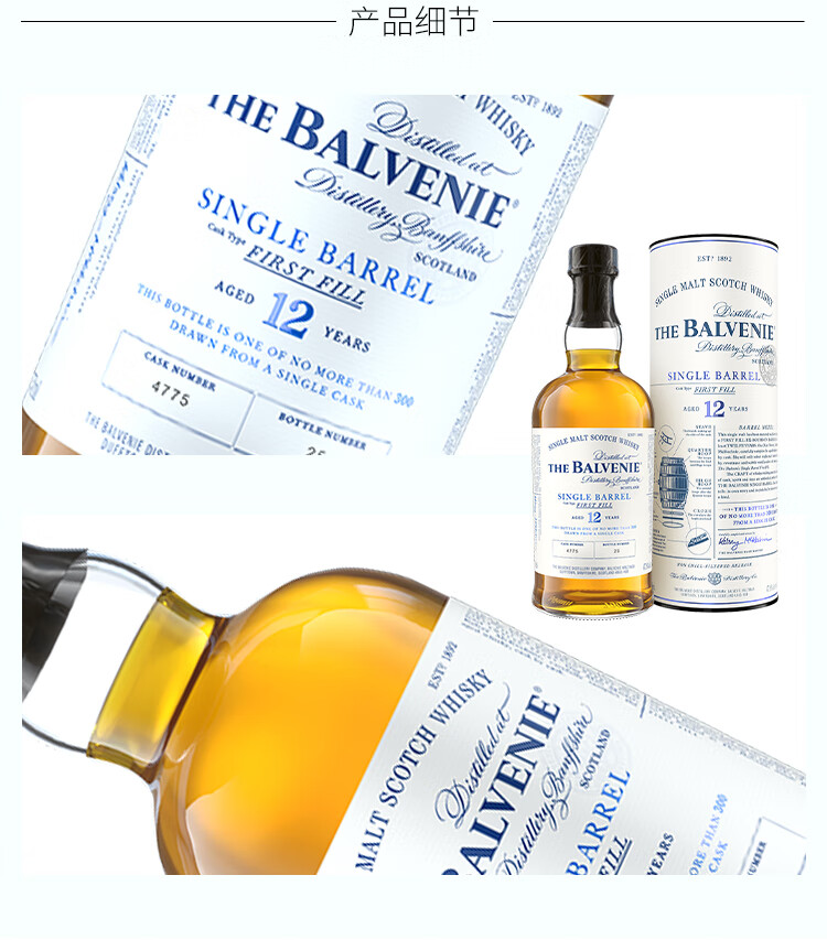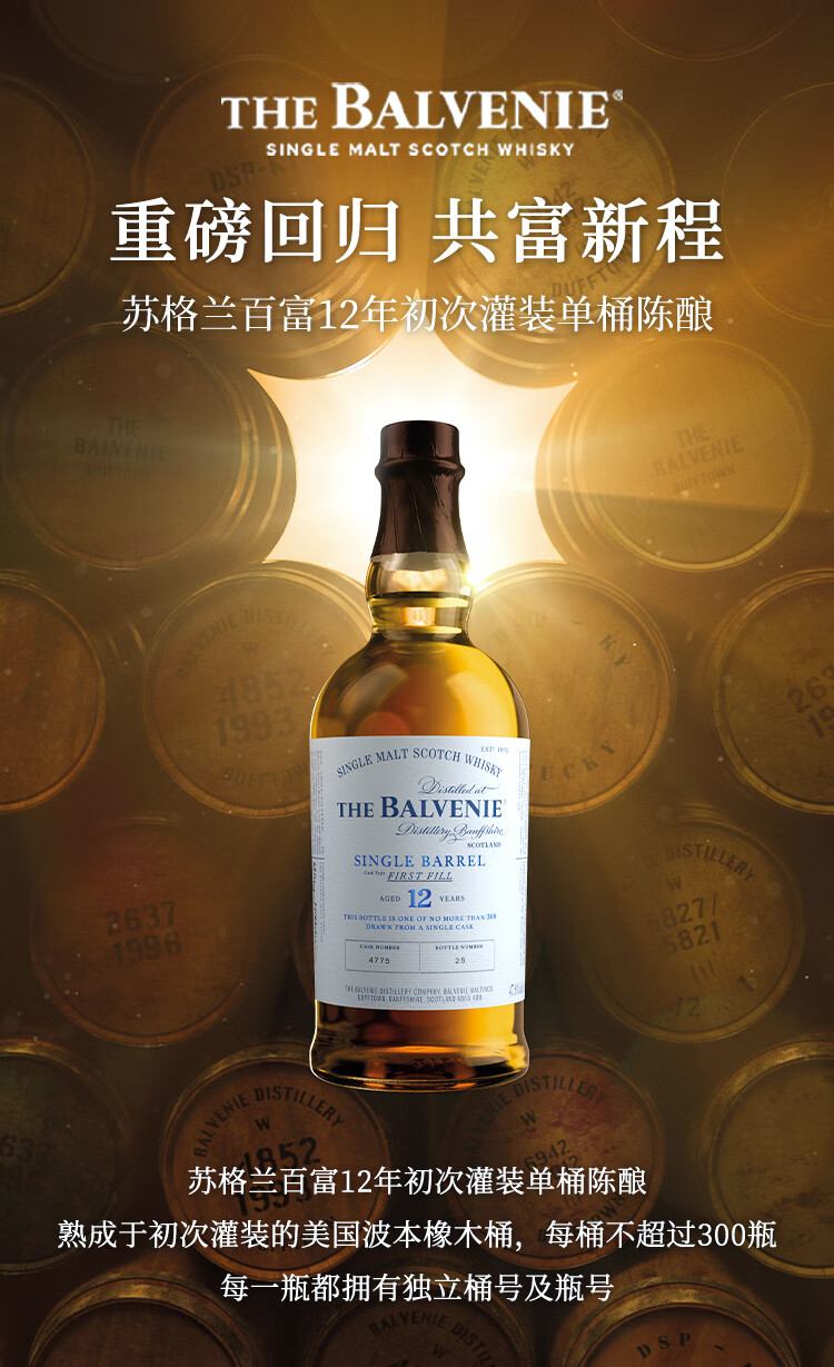 The Balvenie 12-Year-Old Scotch Single Malt Whiskey First Filling Single Barrel Wine Gift Box 700ml Gift