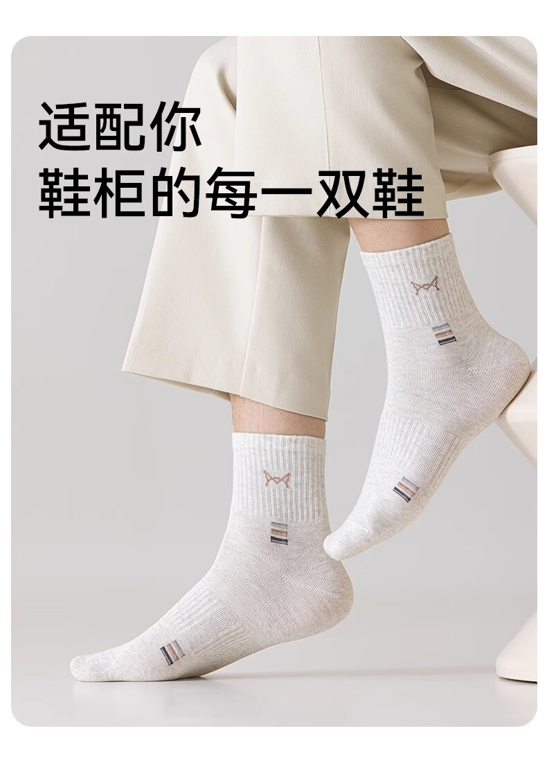 猫人男士袜子男春秋款100%纯棉抗菌防臭吸汗短筒袜透气运动休闲篮球袜