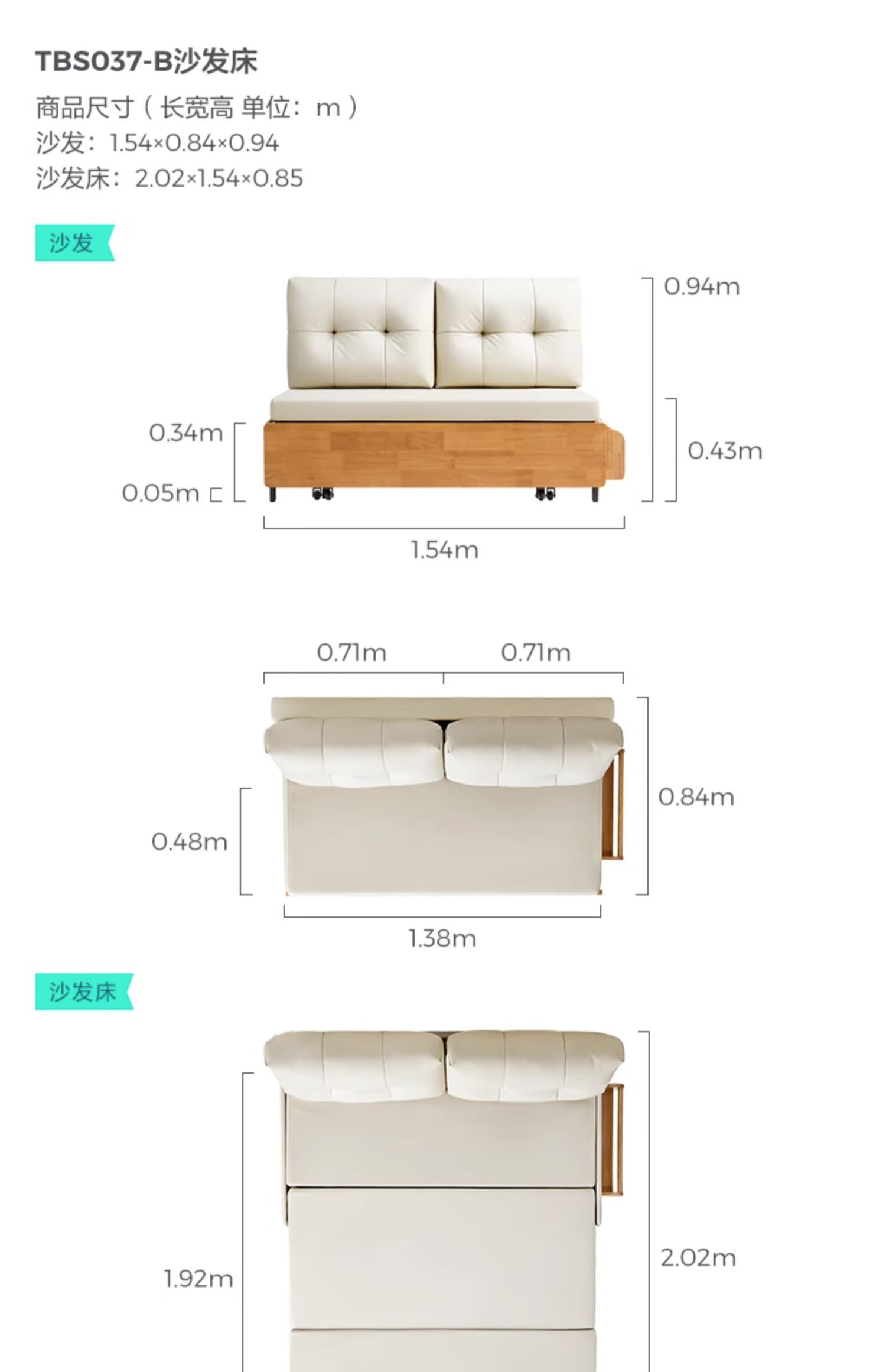 Lins Zuhause einfaches cremefarbenes Klappschlafsofa Wohnzimmer kleine Wohnung TBS037-A großes Doppelbett-Jingcang Shanfa