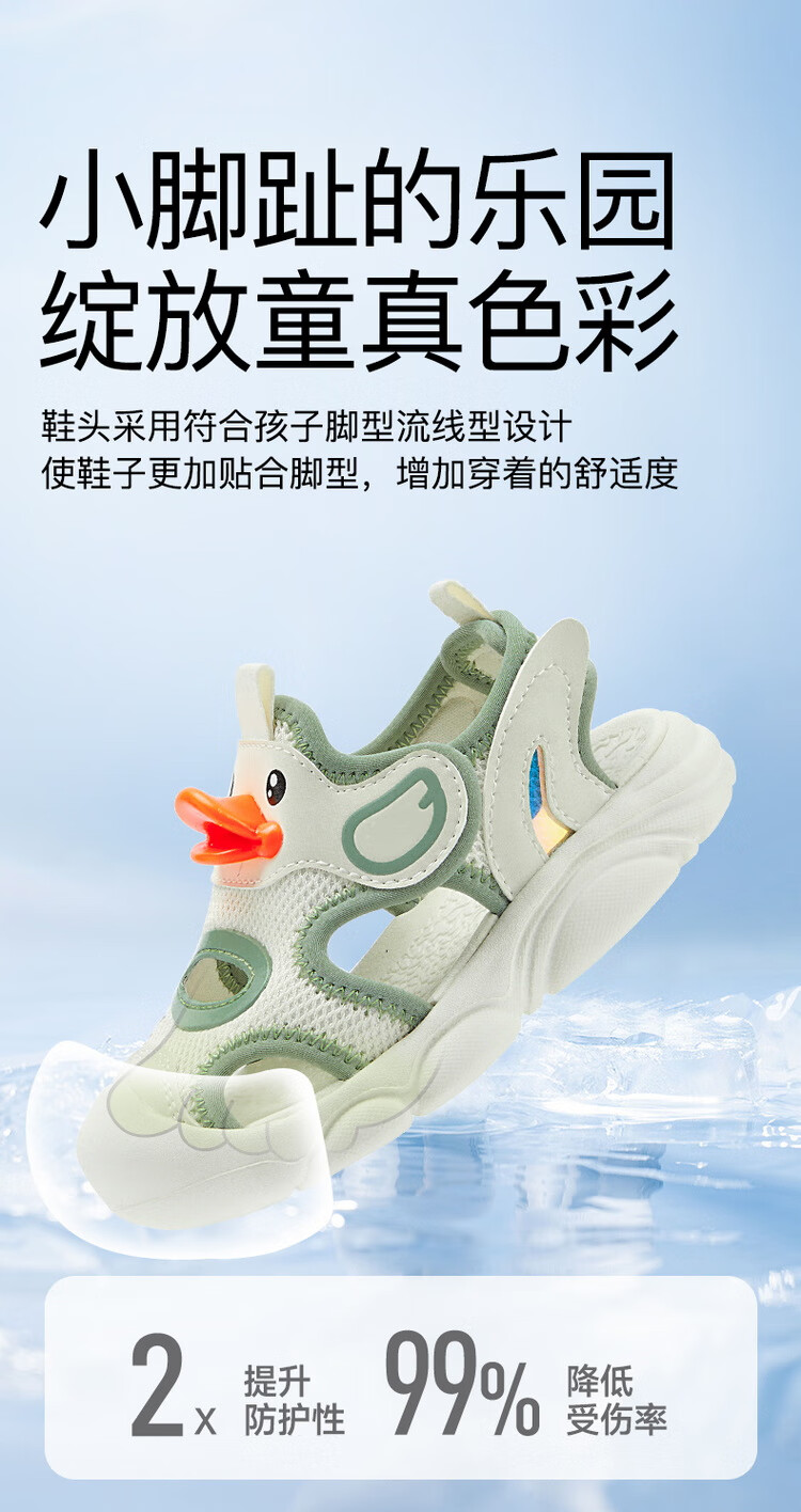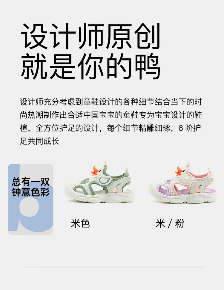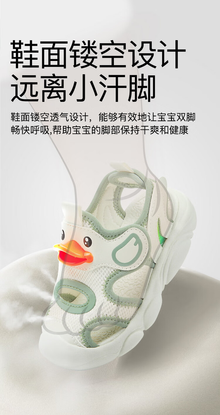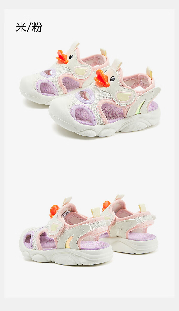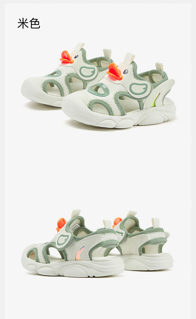 B.Duck小黄鸭童鞋儿童凉鞋夏季包头宝宝鞋男女童运动沙滩鞋3927米色25