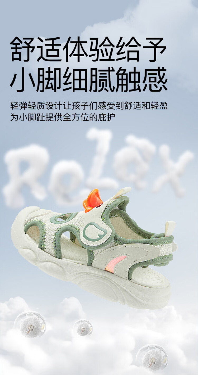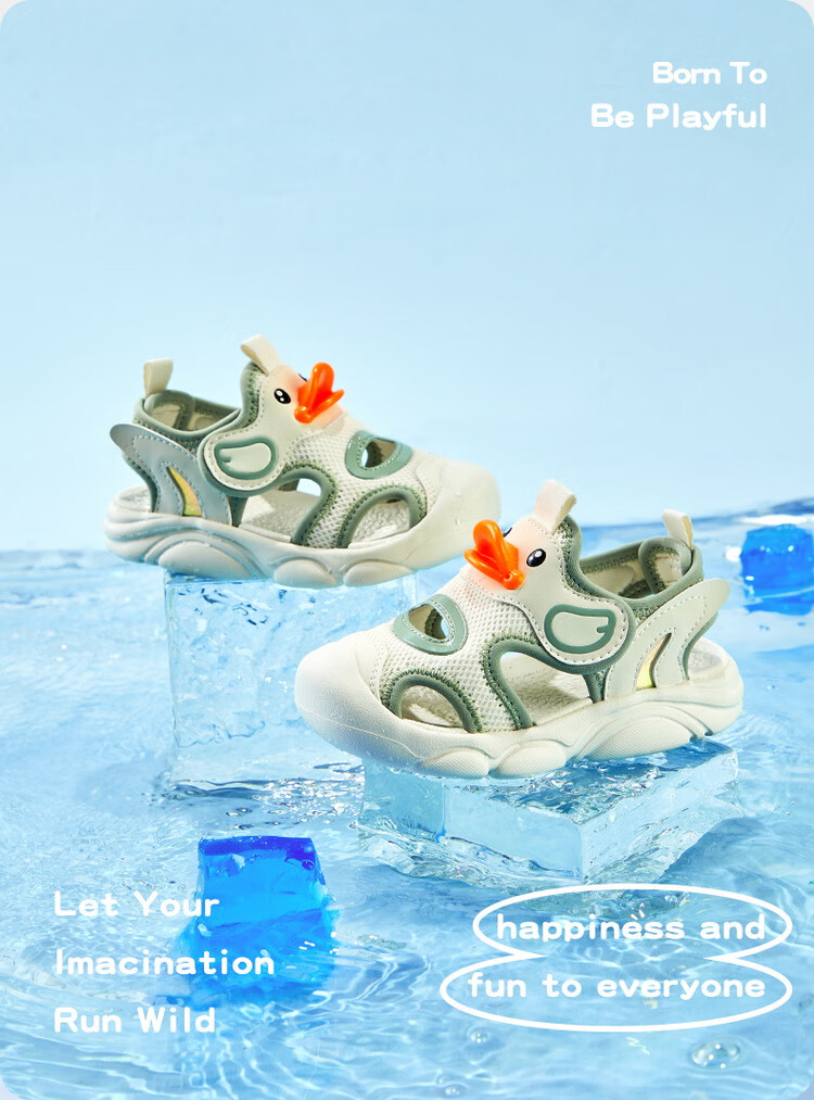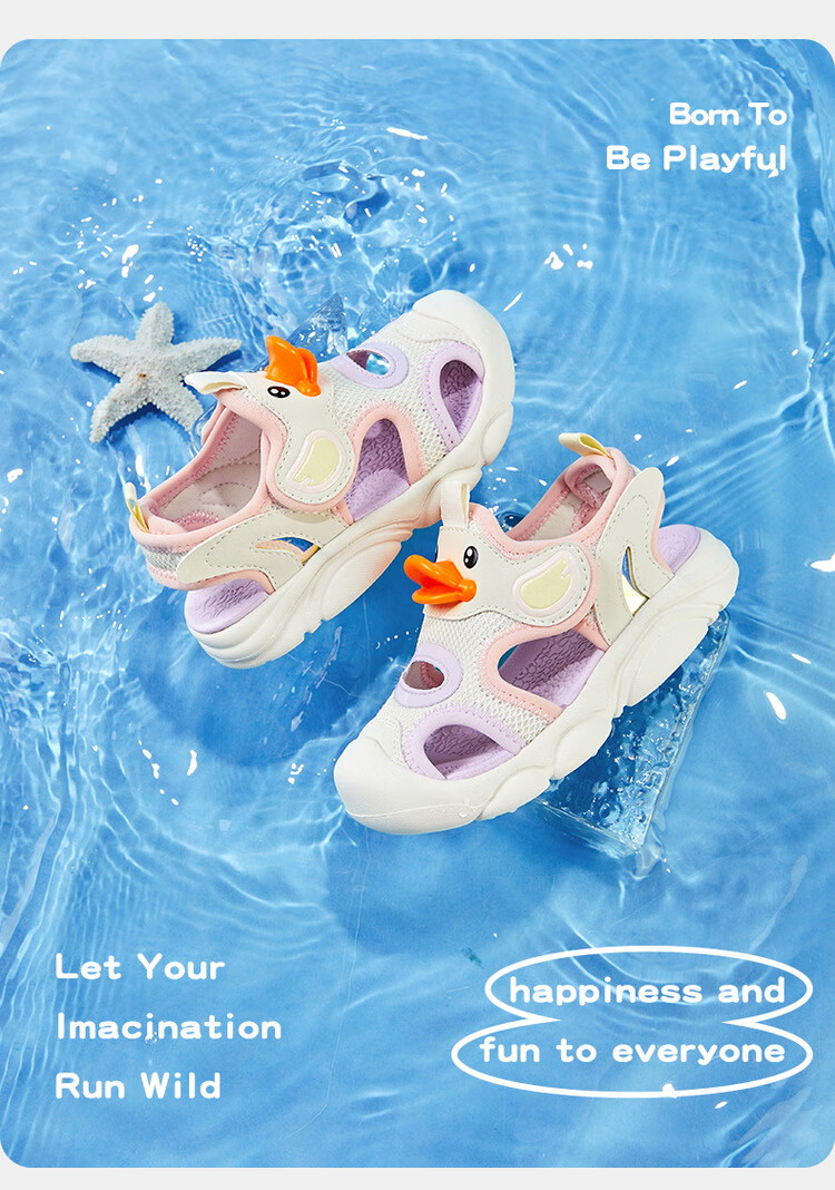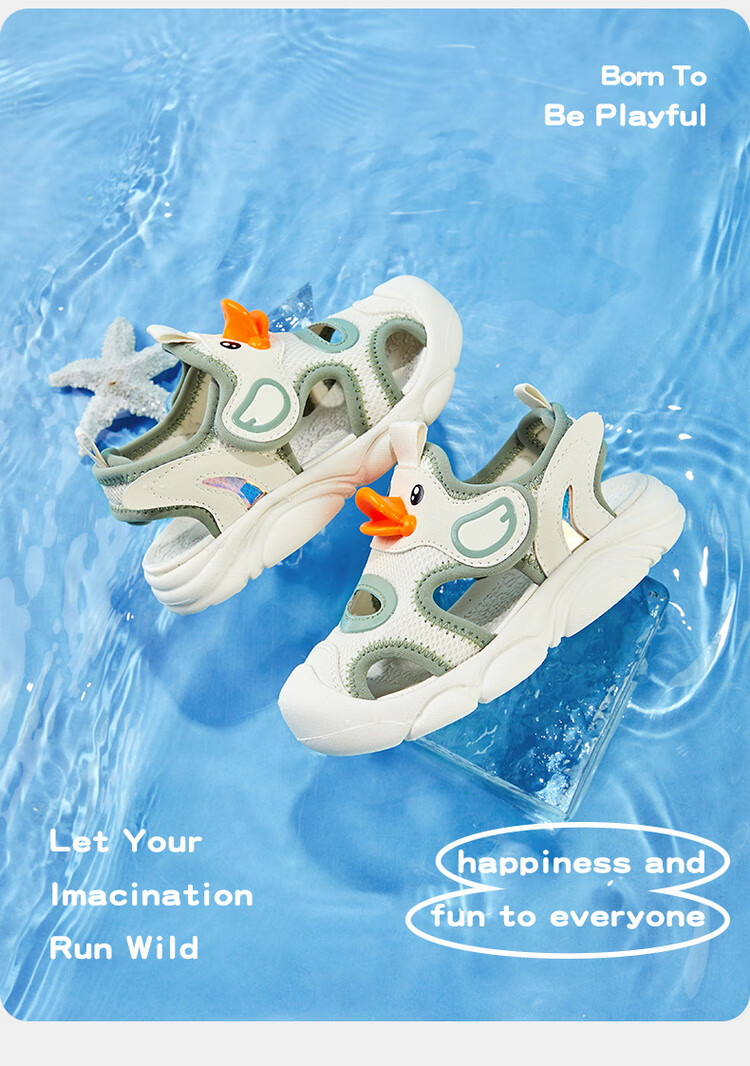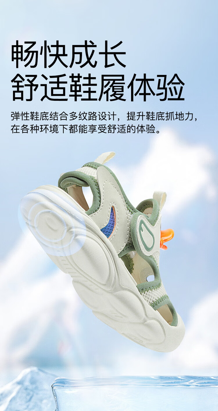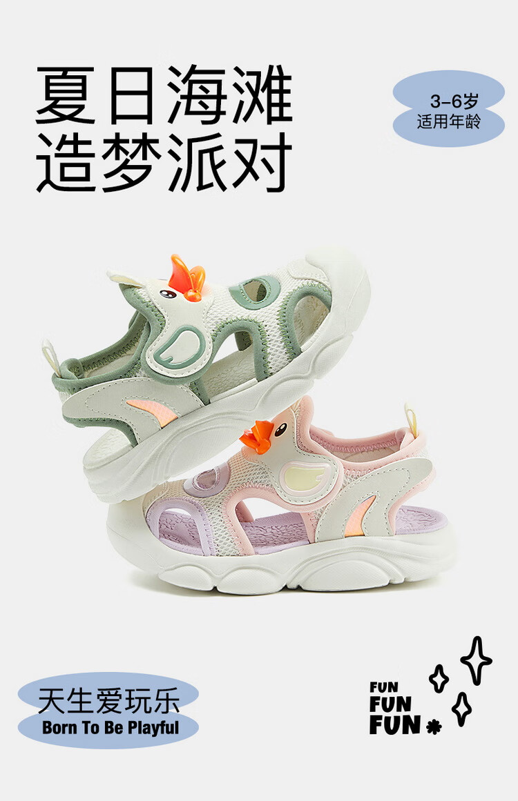 B.Duck小黄鸭童鞋儿童凉鞋夏季包头宝宝鞋男女童运动沙滩鞋3927米色25