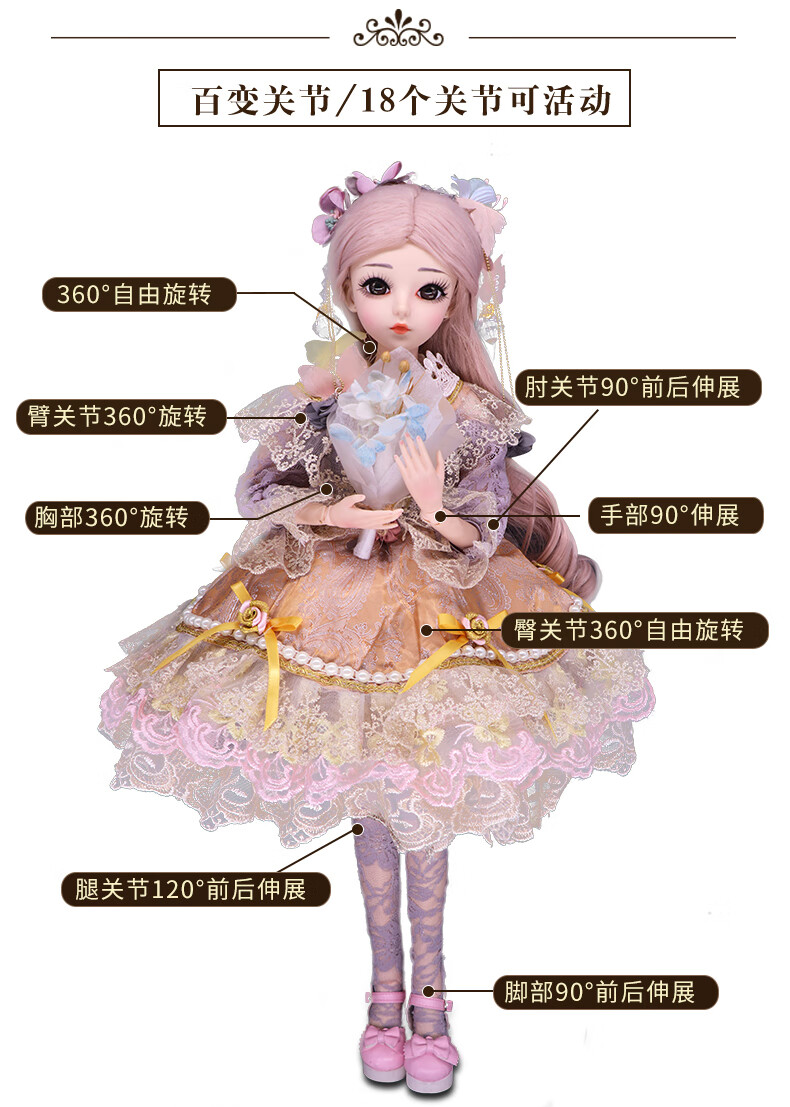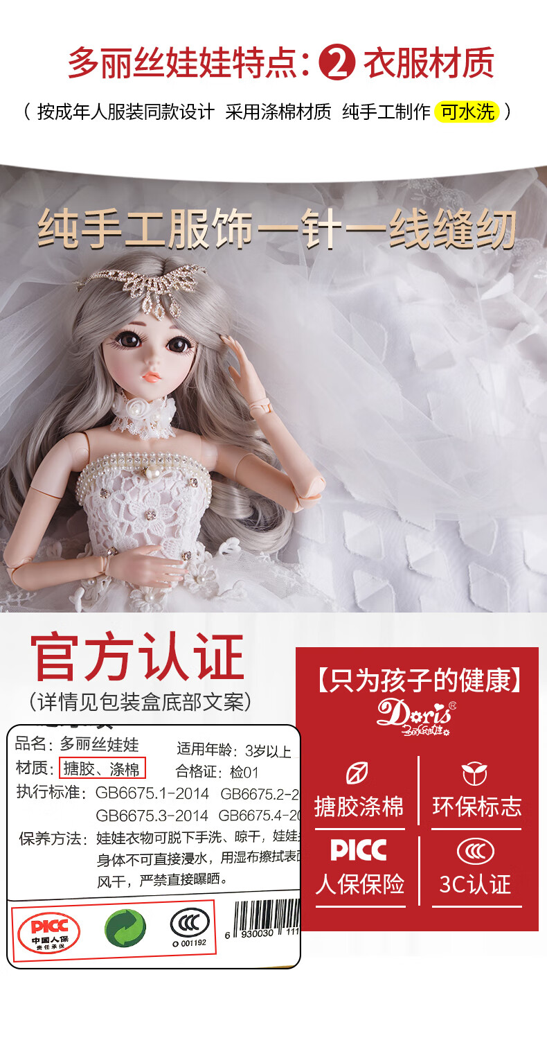 Doris doll (Doris) 60 cm dress-up doll bjd Barbie larger gift box girl 3-6 years old toy girl birthday gift
