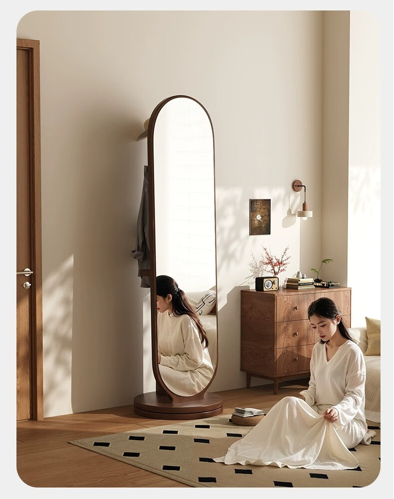 Yimo rotating dressing mirror home floor mirror hanging coat rack integrated mirror girls bedroom removable dressing mirror white