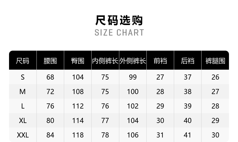 Outseam (cm) 99 cm 101.5 cm 104 cm 106.5 cm 109 cm