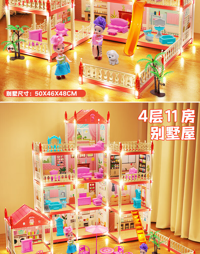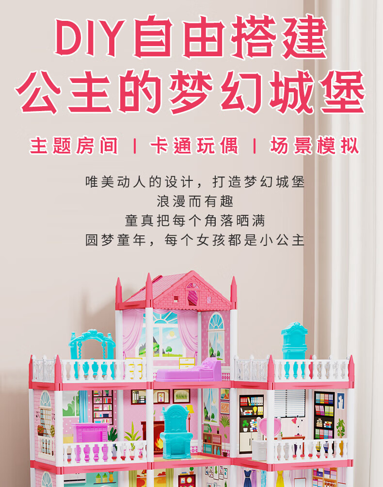 华诗孟过家家公主城堡玩具屋小房子玩具别墅屋玩具DIY拼装女孩生日礼物