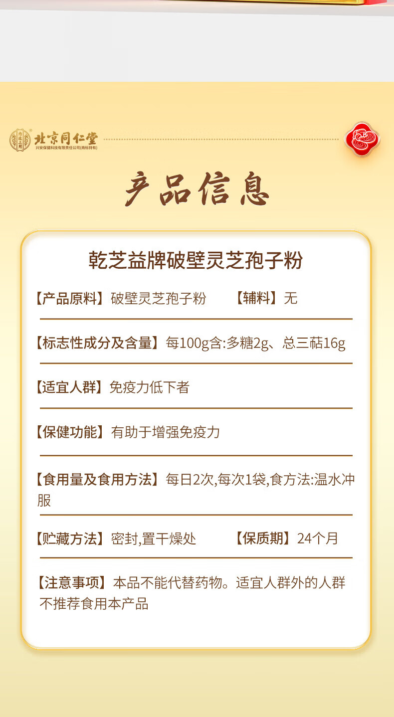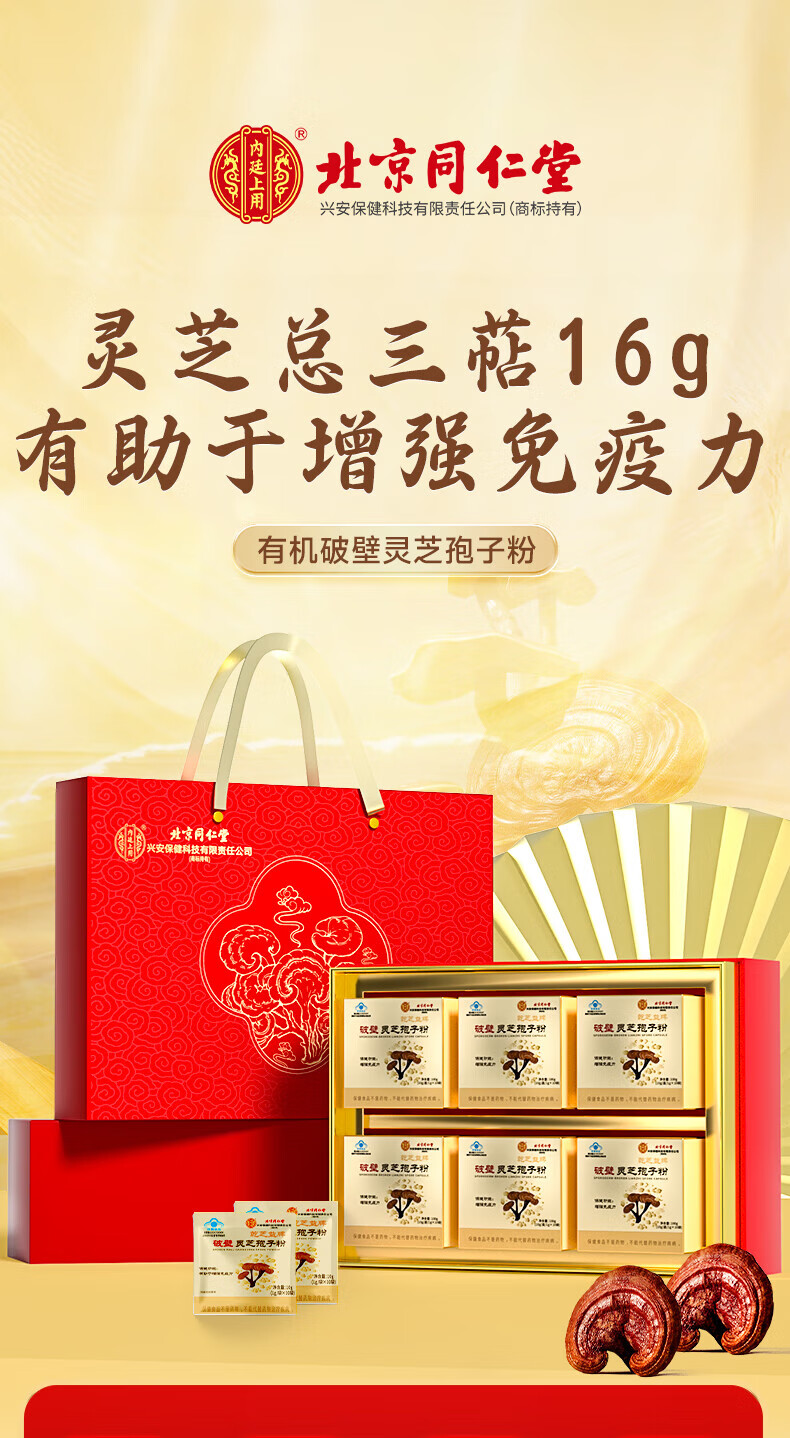 Tong Ren Tang (TRT) gebrochenes Ganoderma-Sporenpulver stärkt die Immunität und nährt als Besuchsgeschenk, 60 g/Geschenkbox, Weihnachtsgeschenk