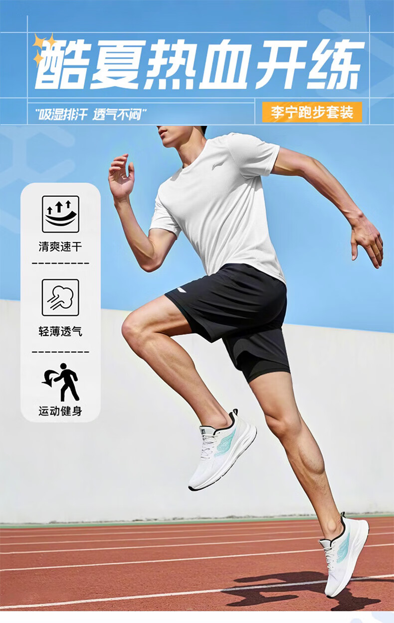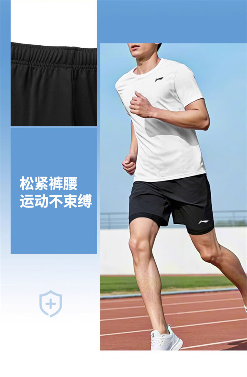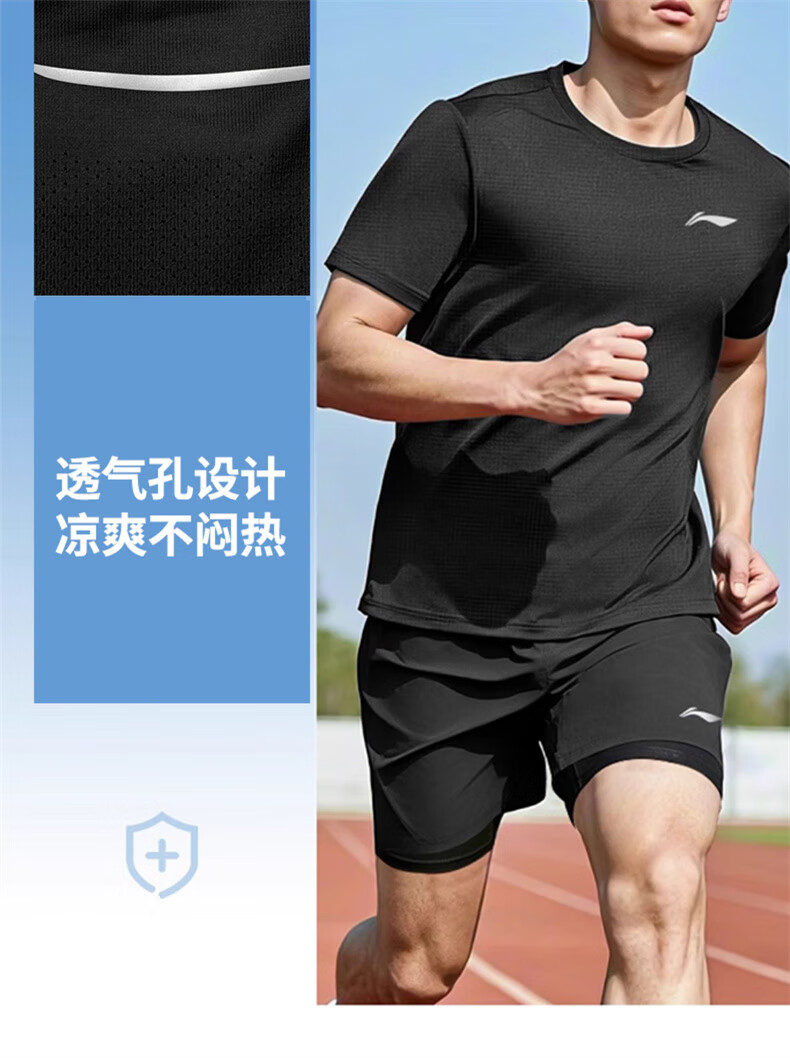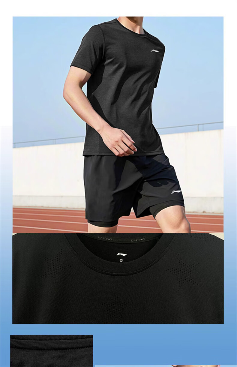 Li Ning Sportanzug für Herren, schnell trocknend, Laufen, Eisseide, kurzärmelige Shorts, Sommer, Badminton, Gymnasium, Aufnahmeprüfung, Sport, körperliche Prüfung, Fitness, Trainingskleidung