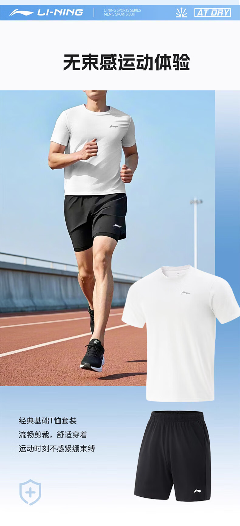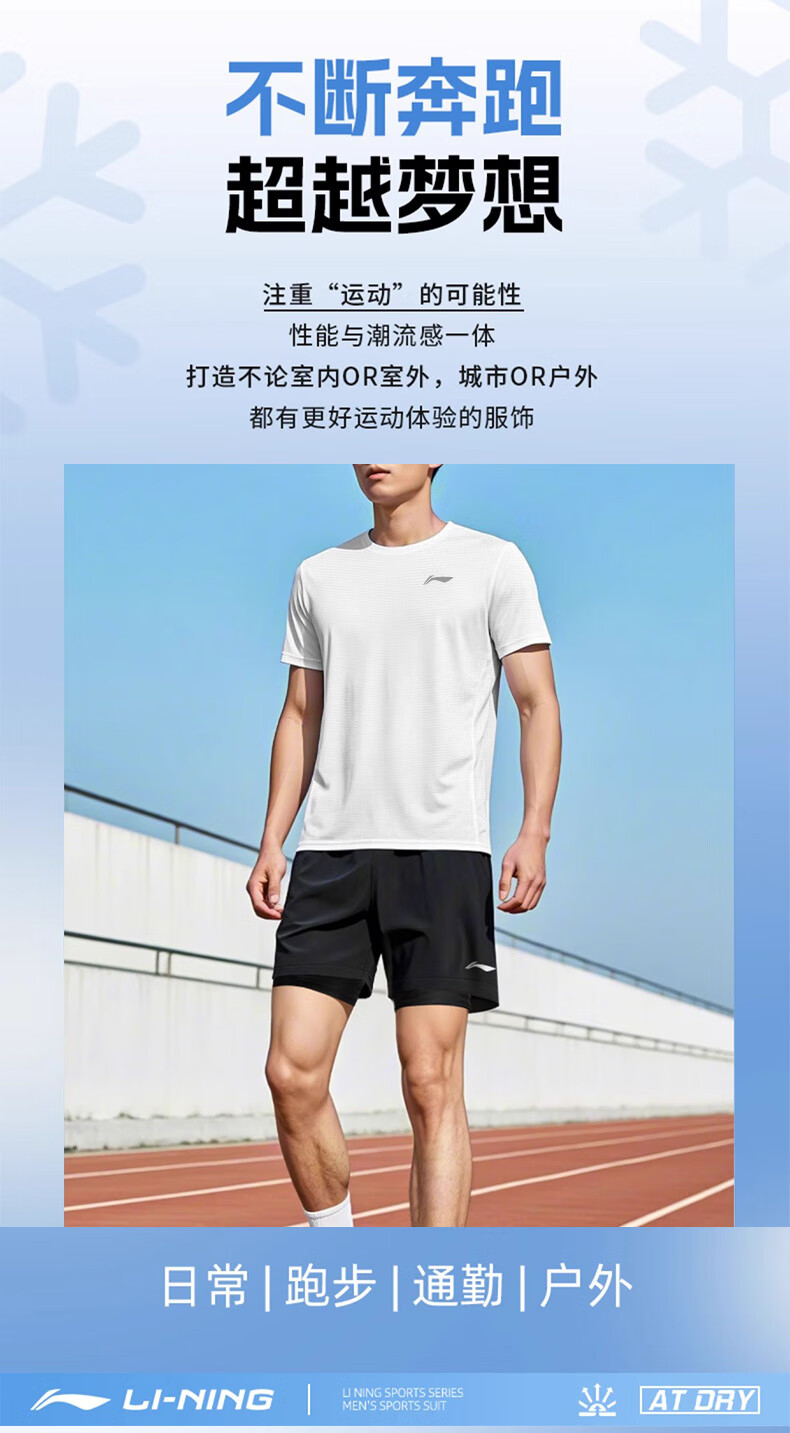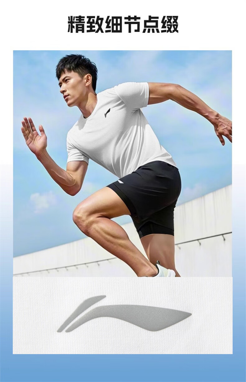 Li Ning Sportanzug für Herren, schnell trocknend, Laufen, Eisseide, kurzärmelige Shorts, Sommer, Badminton, Gymnasium, Aufnahmeprüfung, Sport, körperliche Prüfung, Fitness, Trainingskleidung