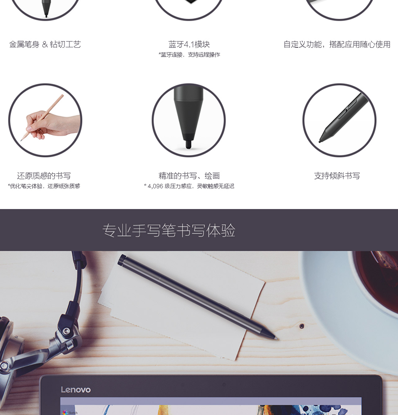 Lenovo original stylus YOGA720 730 C740 920 notebook drawing pen MIIX510/520 tablet writing and drawing 4096 pressure-sensitive active stylus magnetic metal stylus (with Bluetooth) gray black X1 YOGA/X1 Hermit