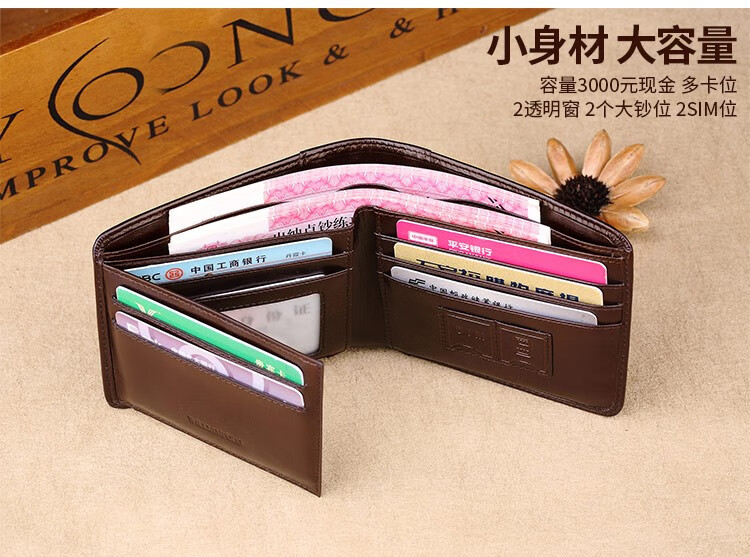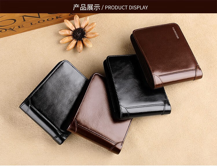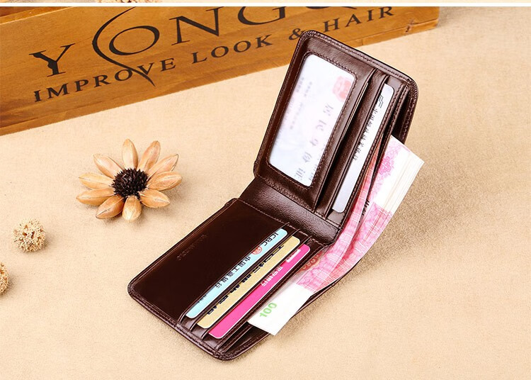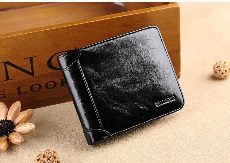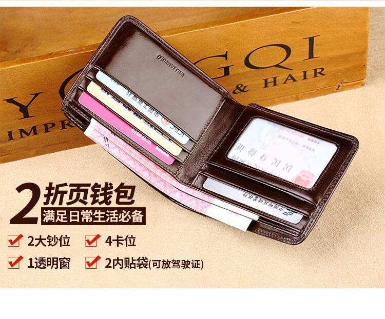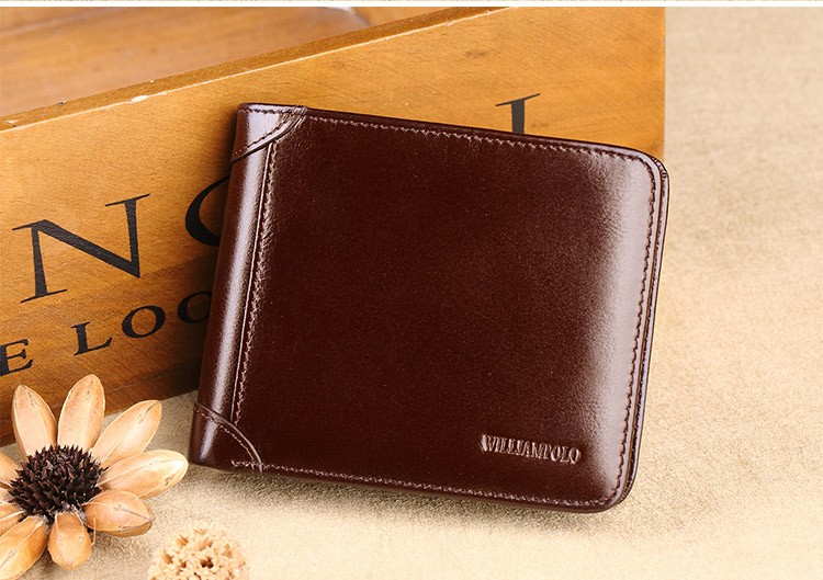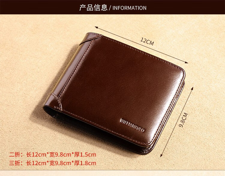 WILLIAMPOLOPOLO男士钱包短款真牛皮卡包油蜡皮钱夹横款钱包  咖啡色-2折