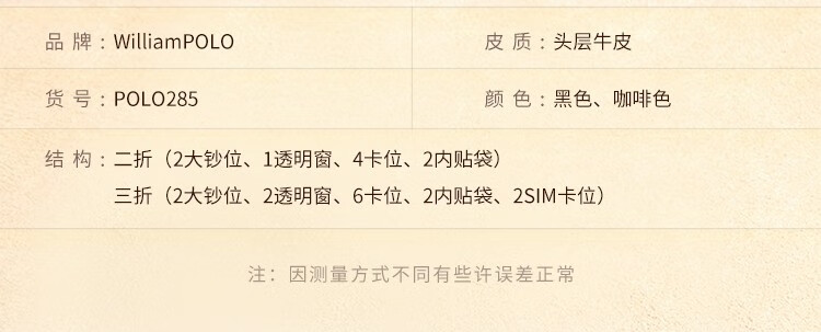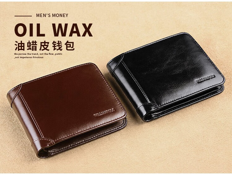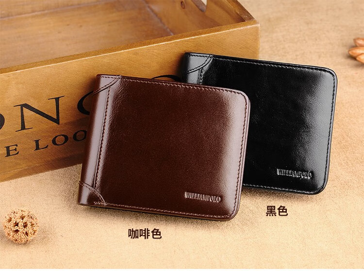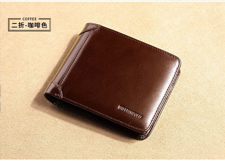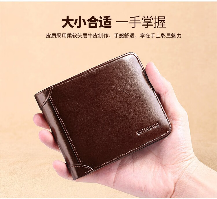 WILLIAMPOLOPOLO男士钱包短款真牛皮卡包油蜡皮钱夹横款钱包 咖啡色-2折