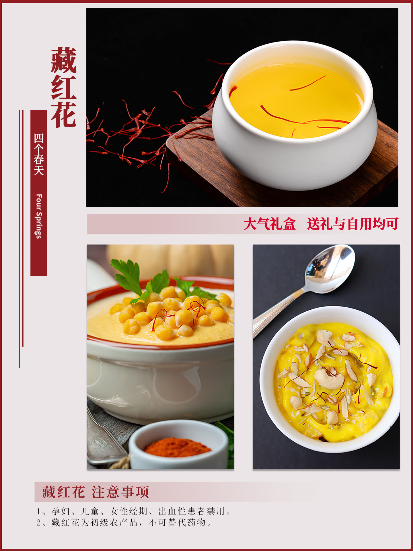 Four Spring Saffron Tea Filament High-End Gift Box Spring Festival Gifts for Elders, Parents, Teachers, Business Gifts FA6