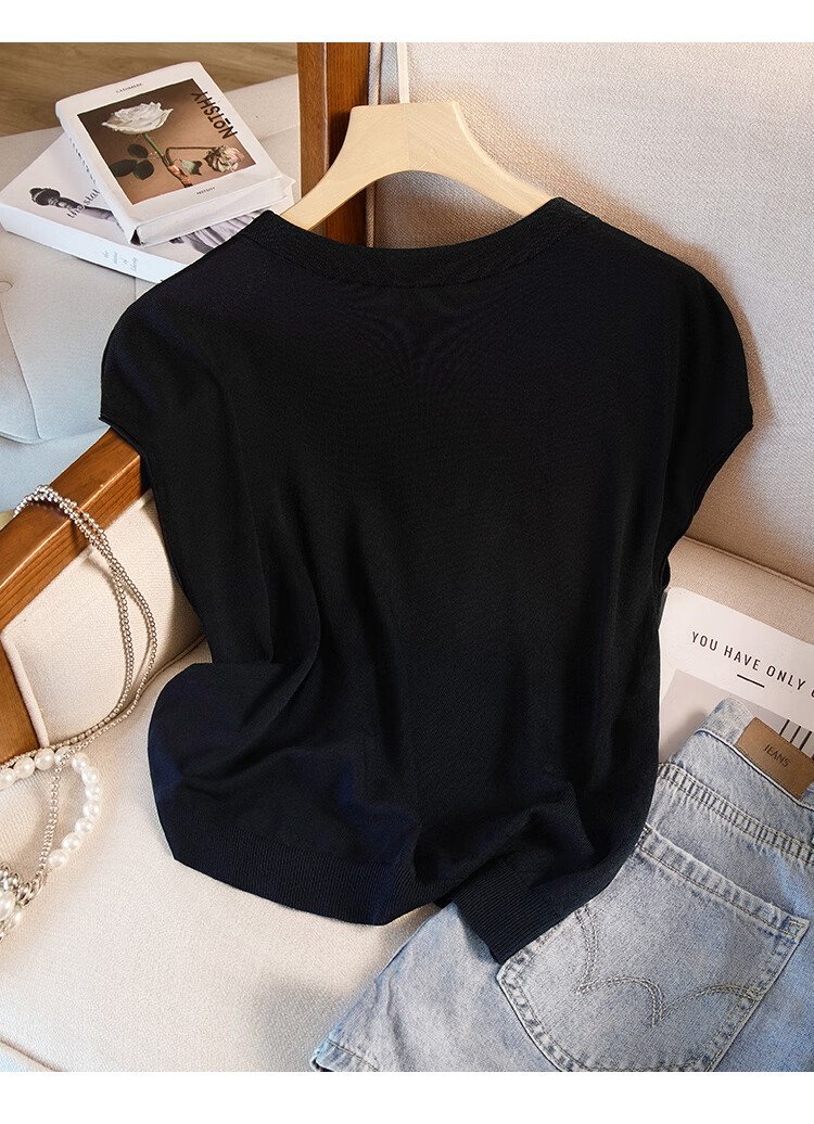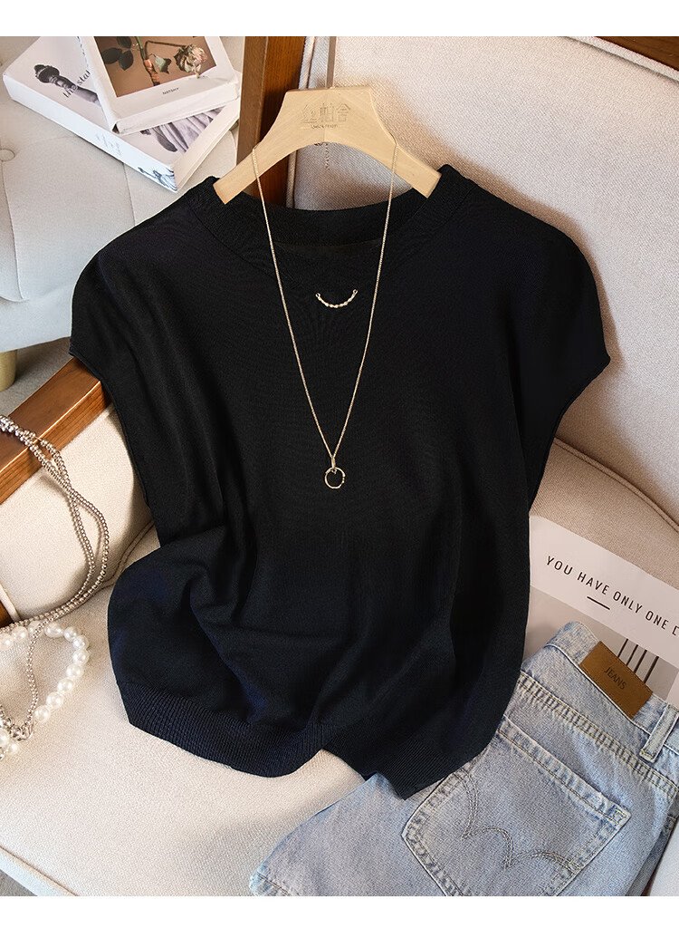 丝柏舍短款针织衫2025夏装新款女装简约圆领套头宽松款上衣S52X3271Z