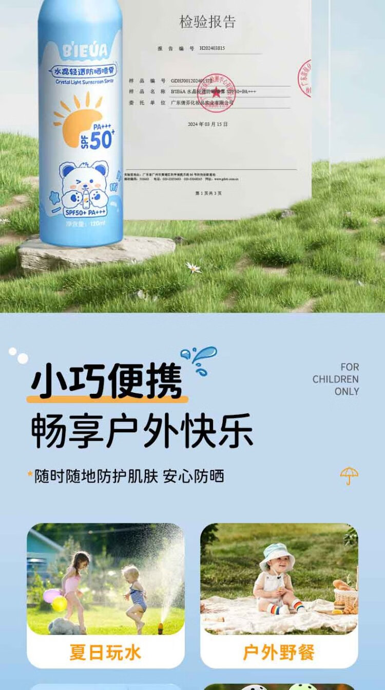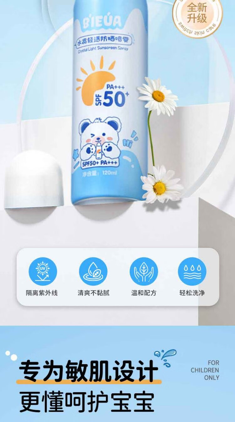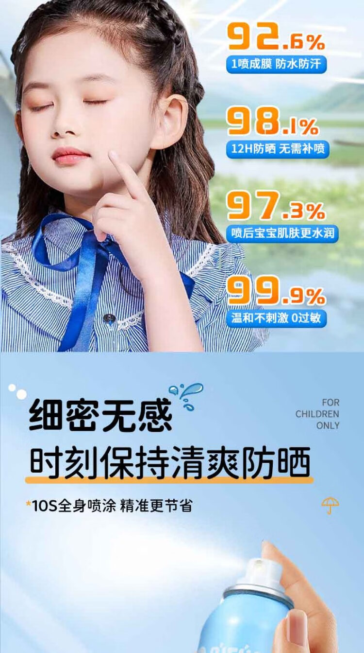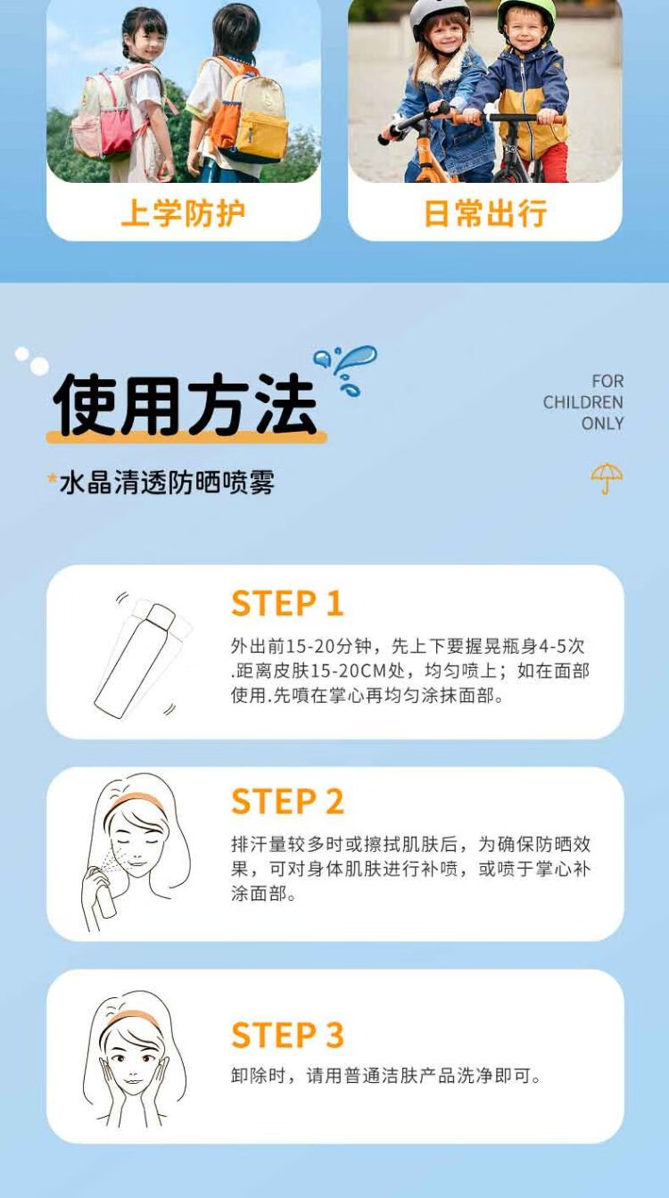 Shidanya children's sunscreen spray sunscreen facial cleanser 3-piece set for students military training men and women outdoor travel essentials