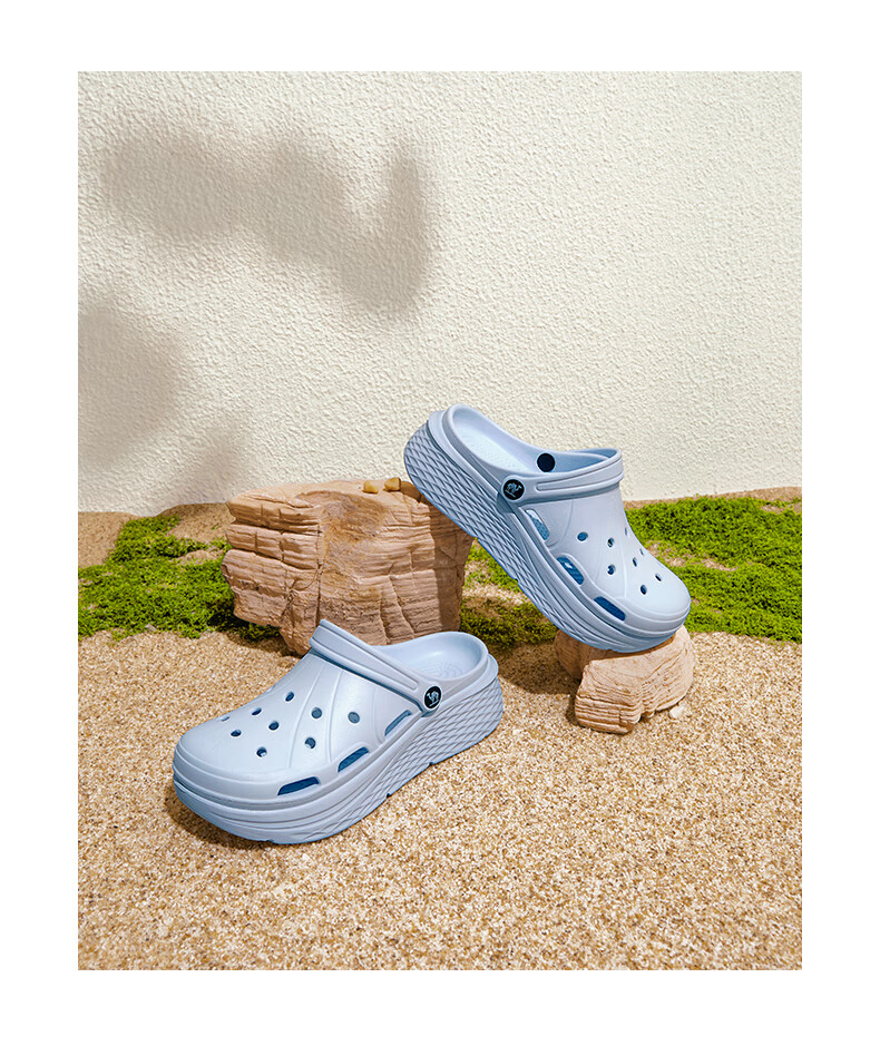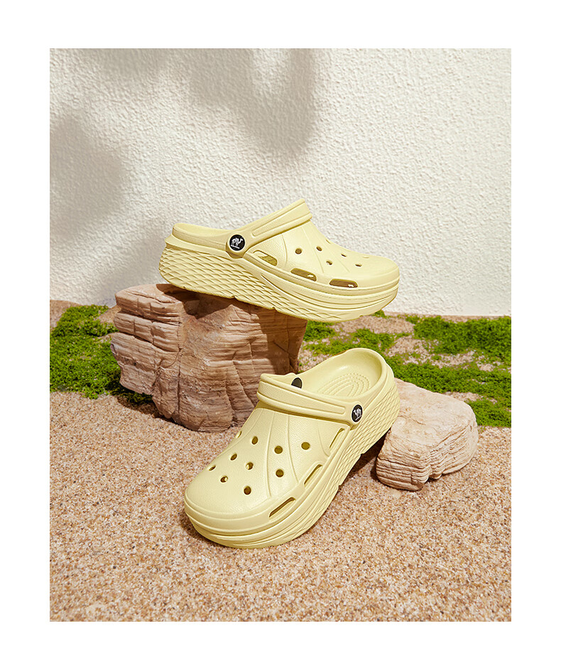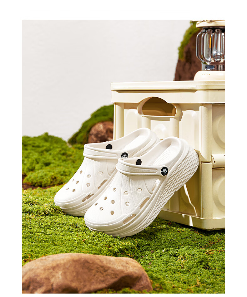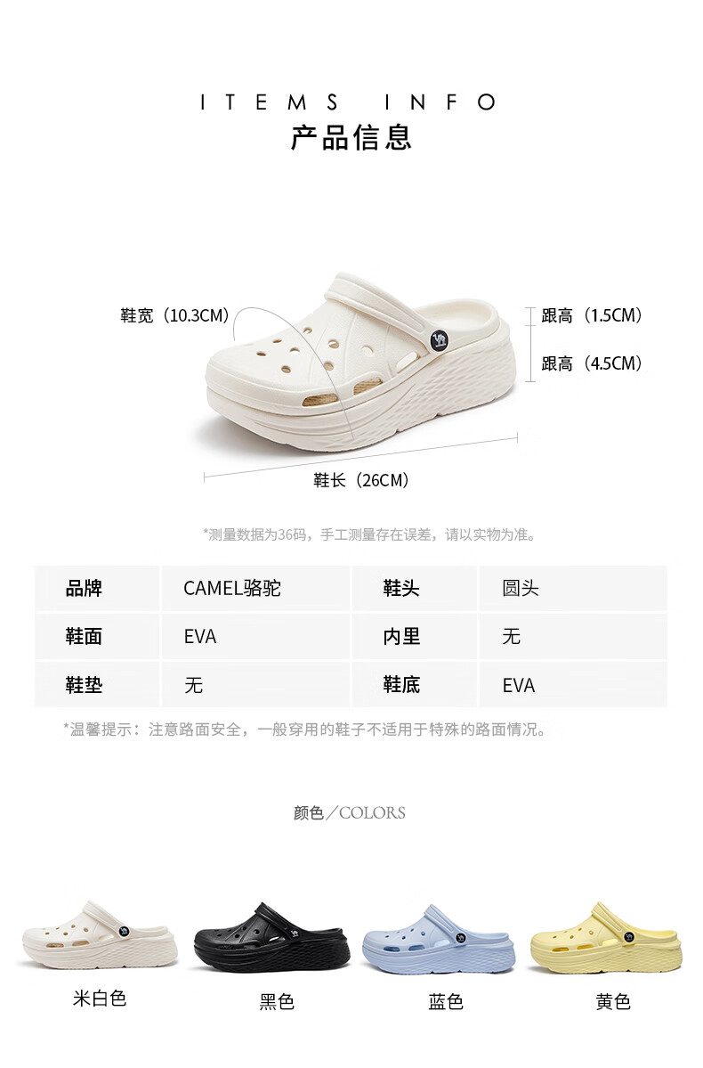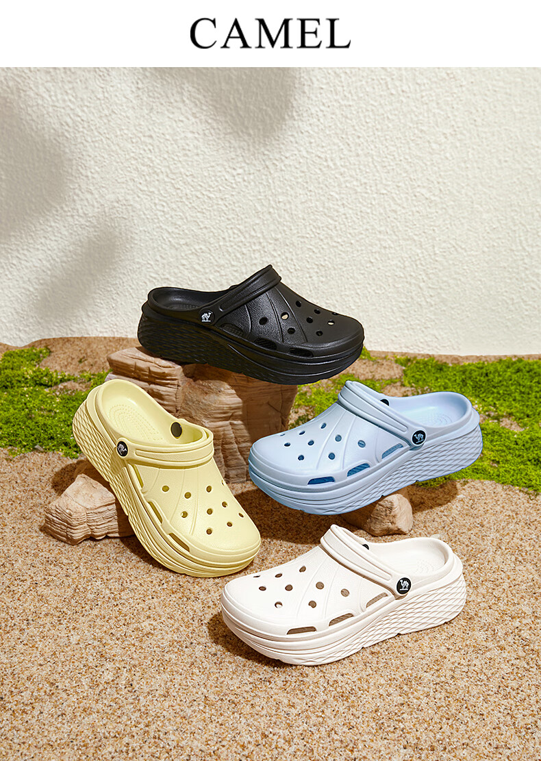 骆驼(CAMEL)洞洞鞋女简约休闲增高厚底凉拖鞋 L25M071022 米白 37-38