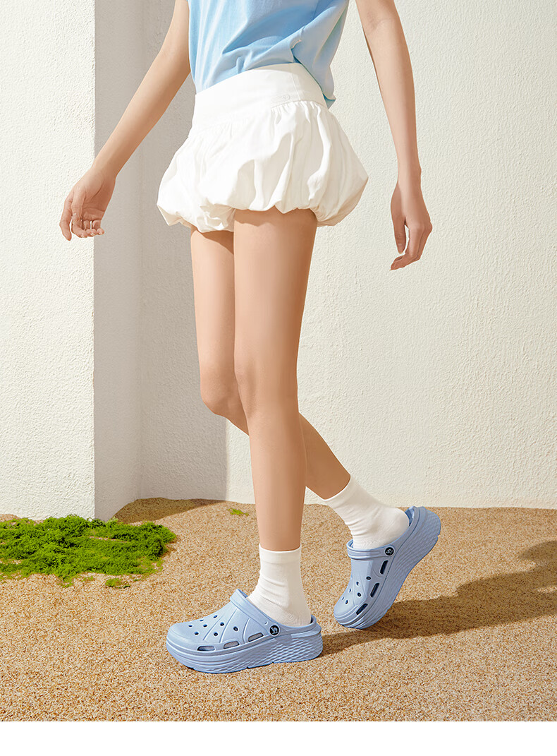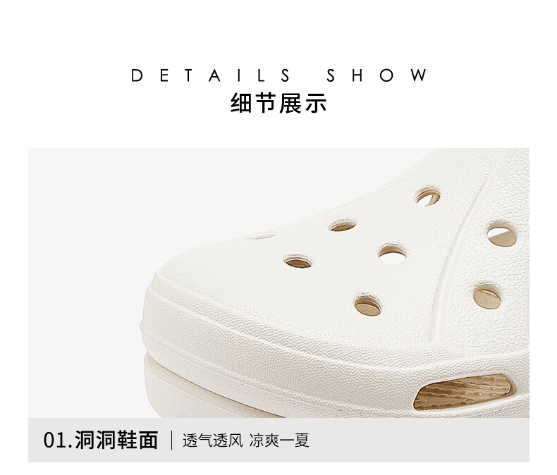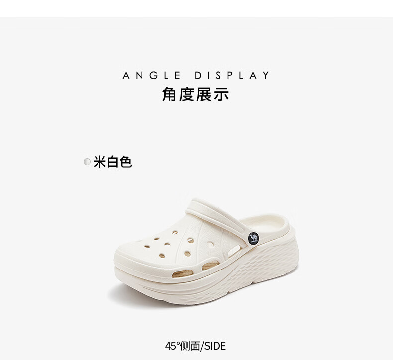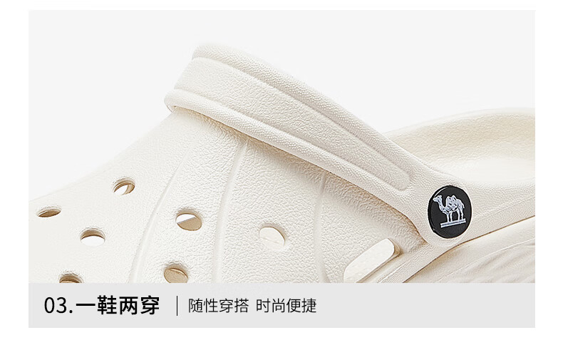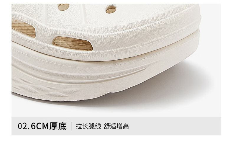 骆驼(CAMEL)洞洞鞋女简约休闲增高厚底凉拖鞋 L25M071022 米白  37-38