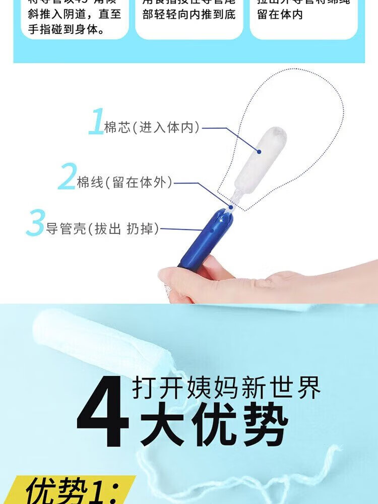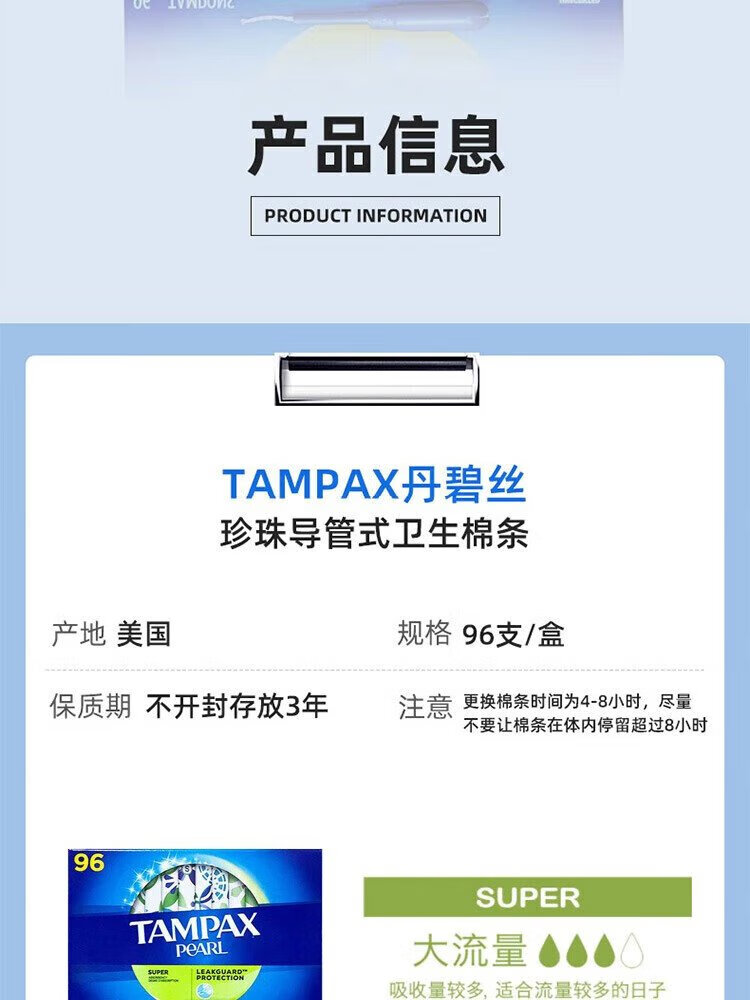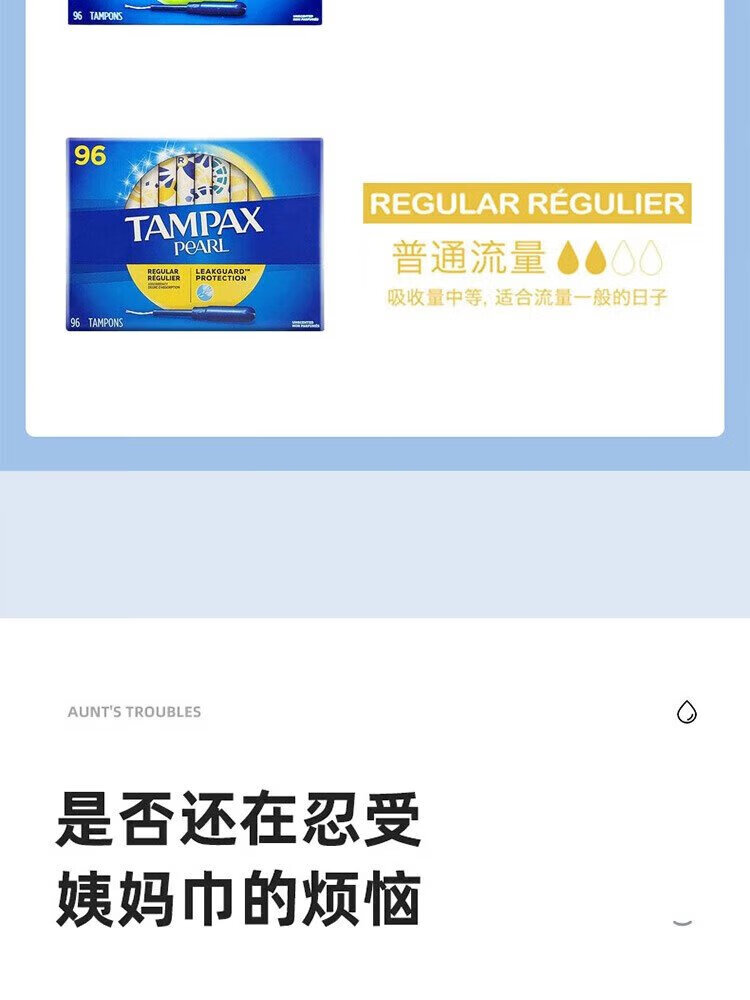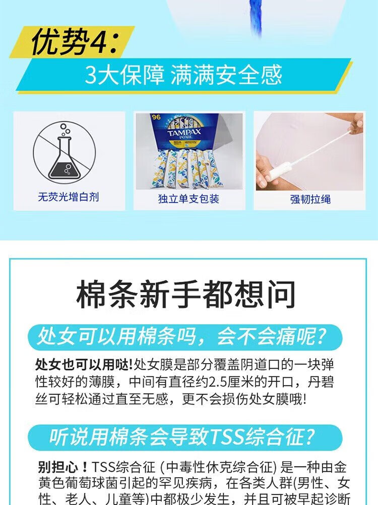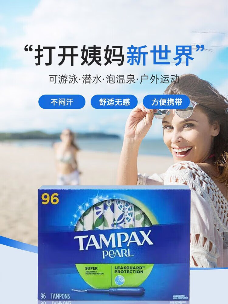 丹碧丝Tampax加拿大进口长导管纯棉卫生棉条96支装*3盒大流量卫