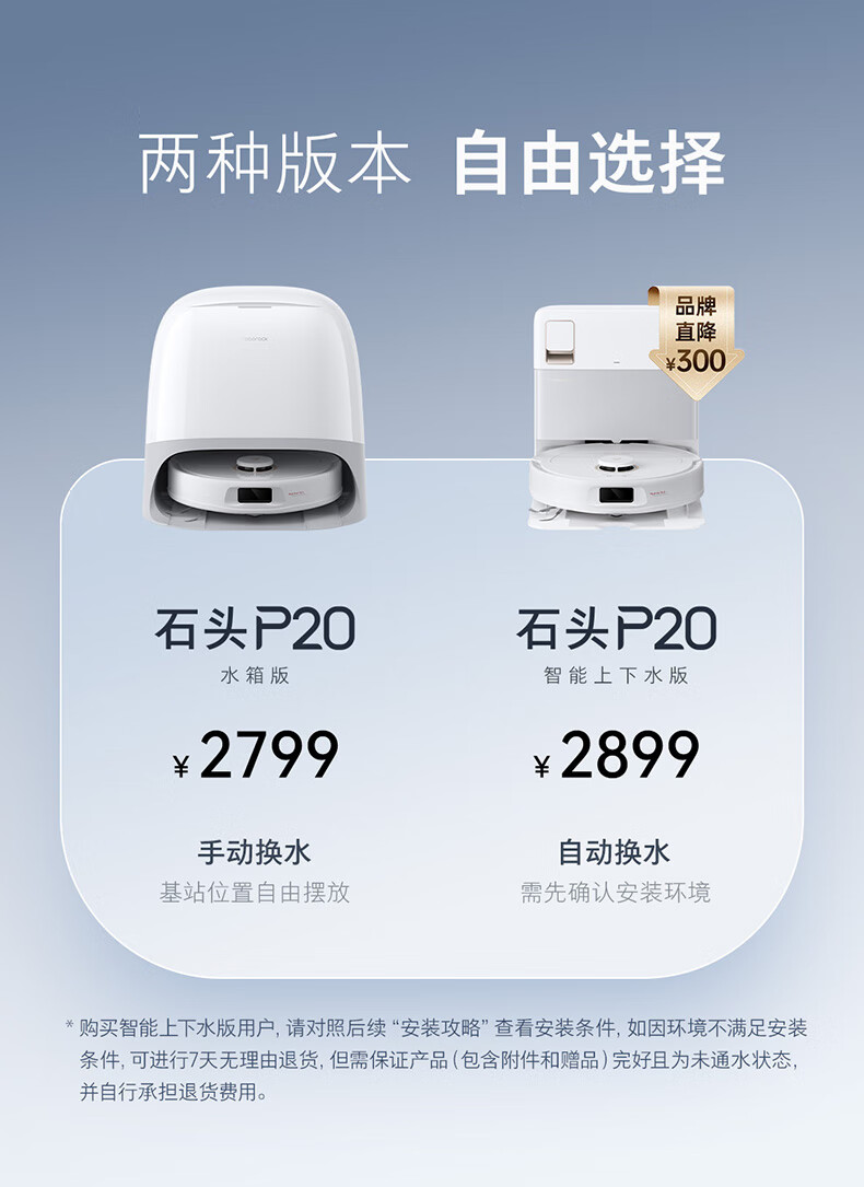 石头(roborock)扫地机器人扫拖一体 P20 自动上下水版 自动集尘洗拖布烘干补水擦地拖地洗地机吸尘器 A1690RR
